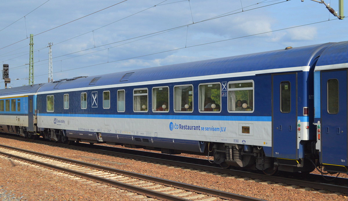 ČD - České dráhy a.s mit einem EC Speisewagen mit der Nr. CZ-CD 73 54 88-91 001-0 WRMZ 815 am 28.08.18 Bf. Flughafen Berlin-Schönefeld. Lothar Stöckmann