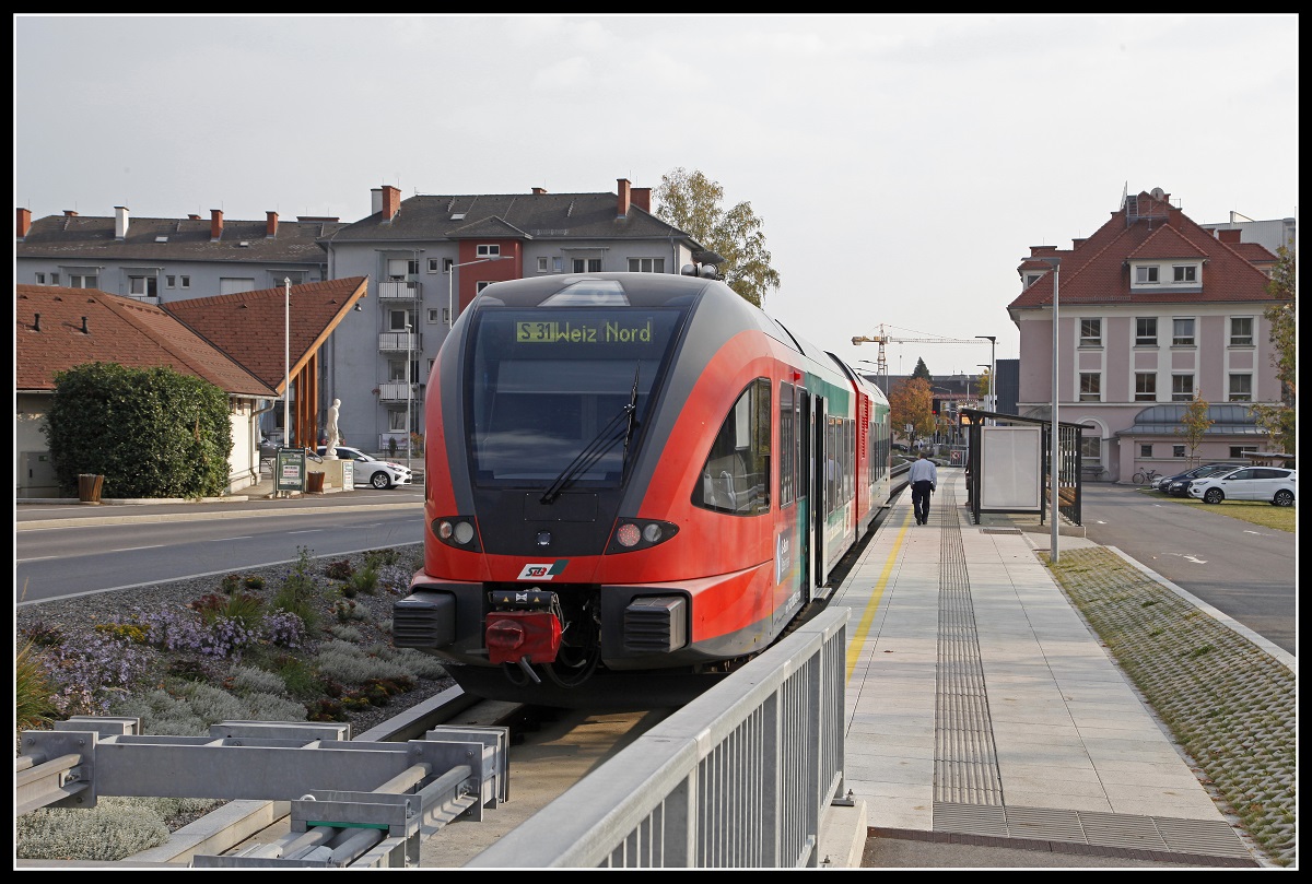 Am 28. Dezember 2018 ist 5062 001 als SB 8662 (Weiz Nord - Gleisdorf) unterwegs und verlässt hier gerade den Bahnhof Unterfladnitz. Mit dem vergangenen Fahrplanwechsel am 9. Dezember wurde das Verkehrsangebot auf der Weizer Bahn übrigens deutlich erweitert. F. Lackner