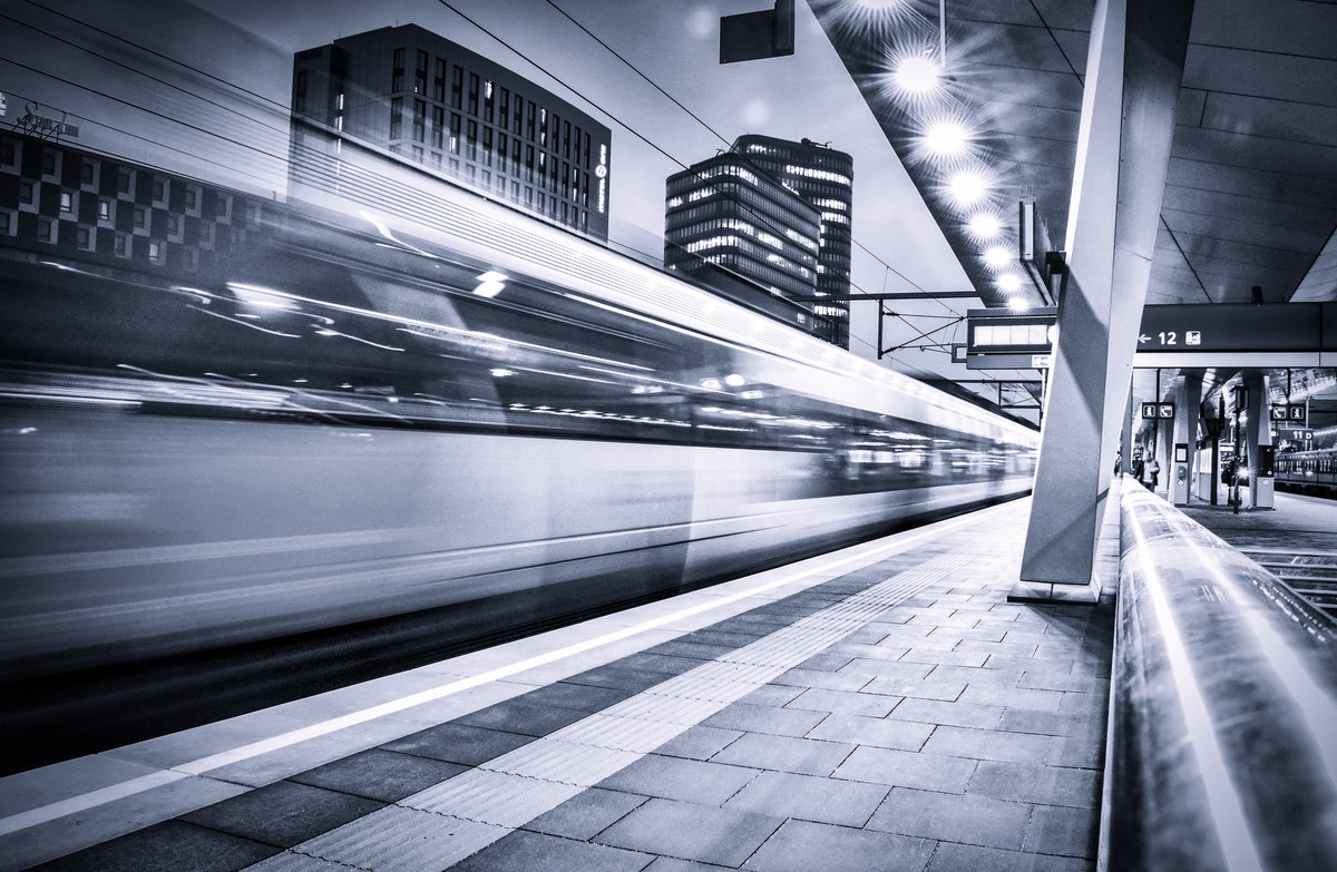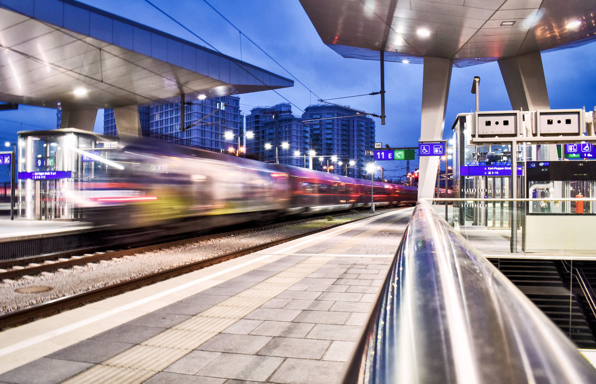 Langzeitbelichtung der Parallelausfahrt eines railjets und der S60 26055 (Wien Hbf - Bruck a. d. Leitha).