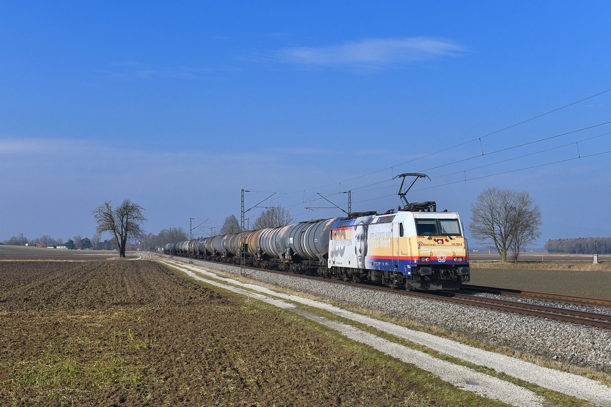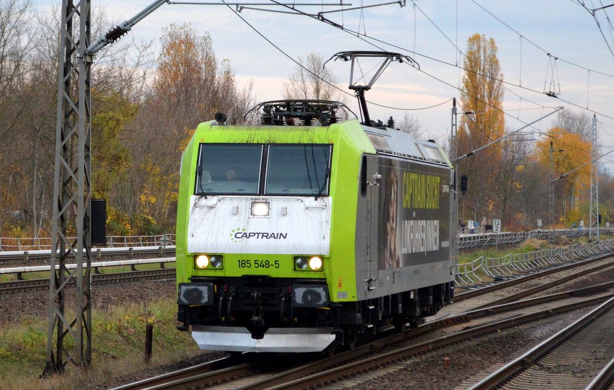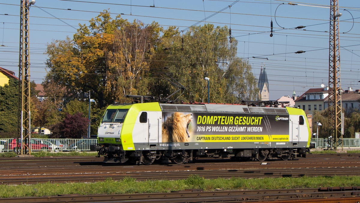 Die Werbelok von Captrain ist ja eigentlich ansprechend. Hoffen wir, dass das funktioniert. 185 532-9 am 10. Oktober 2018 im Hbf Wels. Benjamin Ludwig