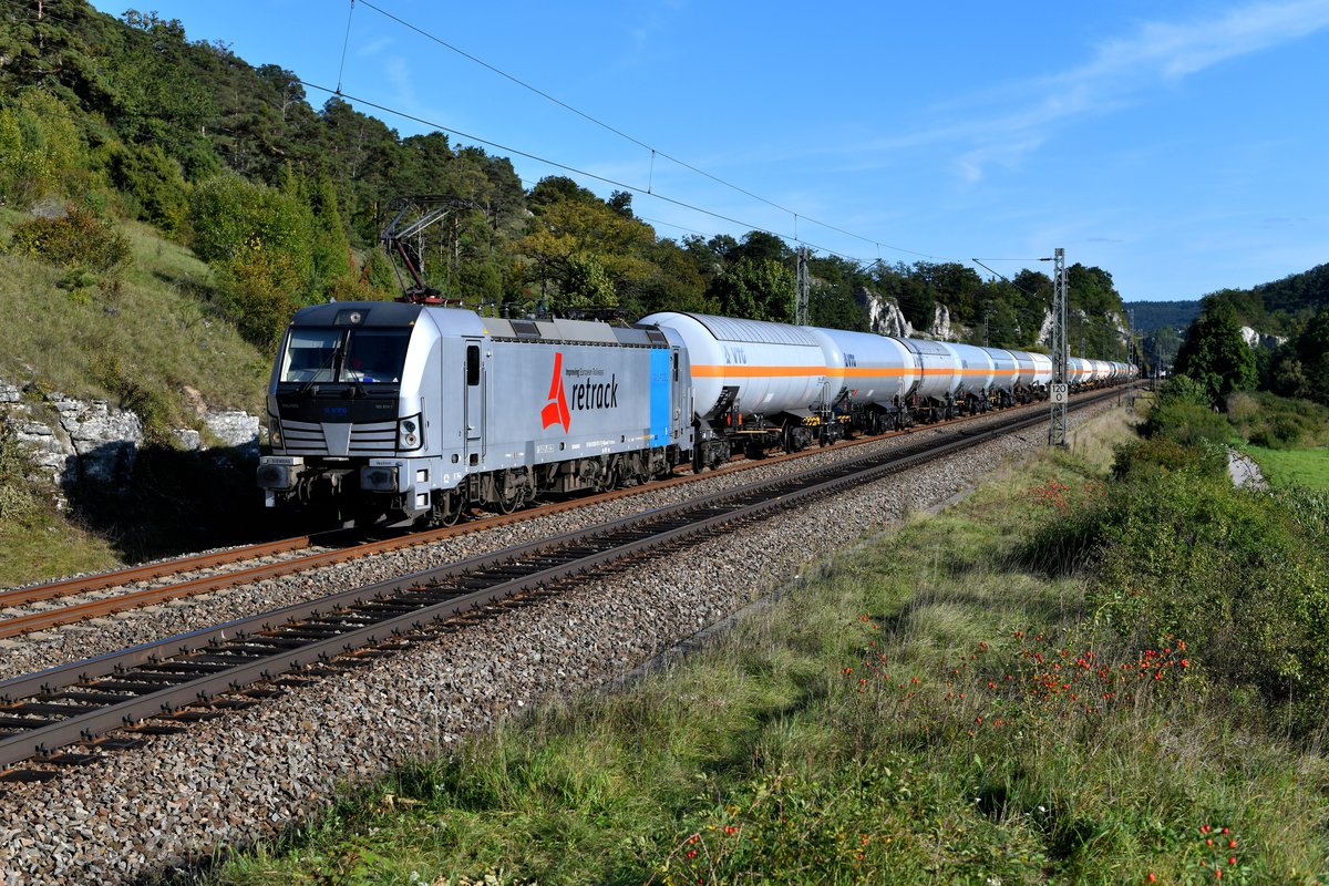 Einen Ganzzug bestehend aus Gaskesselwagen hatte am 19. September die Railpool 193 811 am Haken. Bei Hagenacker konnte ich die an die Retrack GmbH vermietete Maschine bei der Fahrt durch den Naturpark Altmühltal aufnehmen. Christoph Schneider