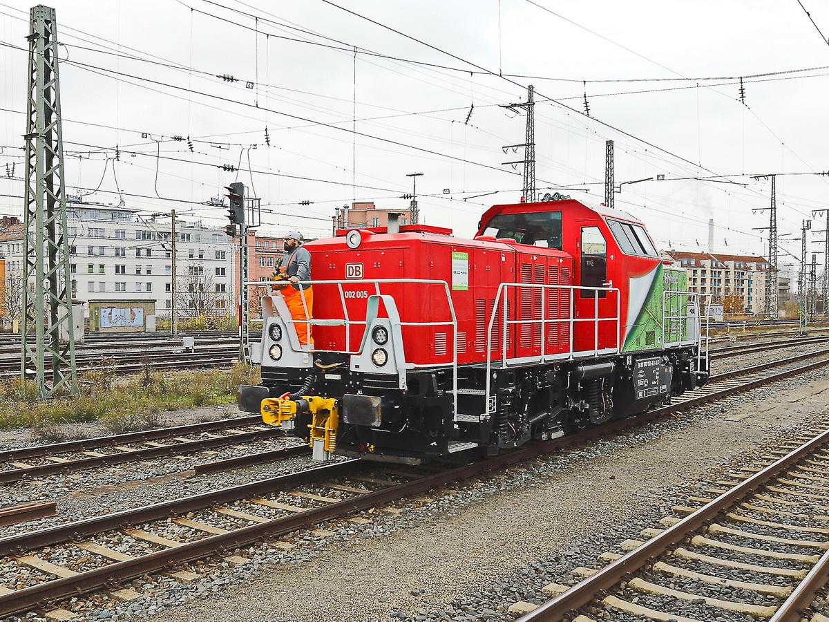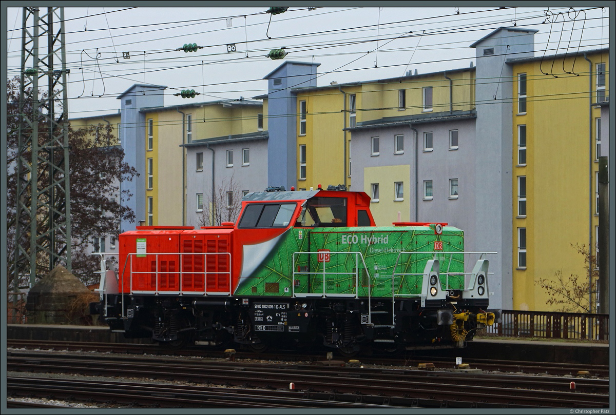 Die H3-Hybridlok 1002 009-1 von Alstom wartet am 02.02.2019 in Nürnberg Hbf auf weitere Einsätze. Im Rahmen des Forschungsprojekts "DB ECO Hybrid" soll die Praxistauglichkeit der Hybridlokomotiven getestet werden. Laut DB sparen die Hybridloks ca. 35 % Dieselkraftstoff gegenüber vergleichbaren Dieselloks. Christopher Pätz