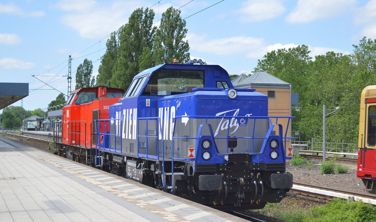 WFL "Lok 26/ 203 120-1" (NVR-Nummer: 92 80 1203 120-1 D-WFL) bei einer Überführungsfahrt mit der Hybrid Lok Alstom H3 1002 021-6 der Fa. Talgo am Haken am 07.06.19 BF. Berlin Jungfernheide. Lothar Stöckmann