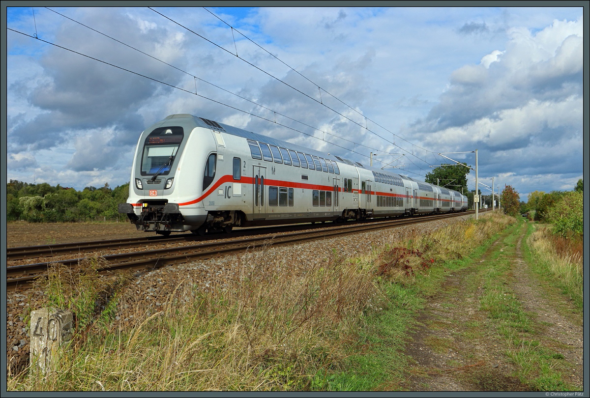 DBpbzfa 668.2 mit Schublok 146 567-3 DB als IC 2039 (Linie 56) von Norddeich Mole nach Leipzig Hbf durchfährt den Hp Greppin auf der Bahnstrecke Trebnitz–Leipzig (KBS 251).