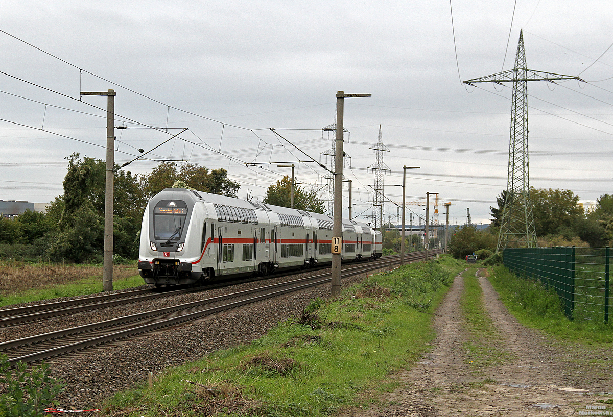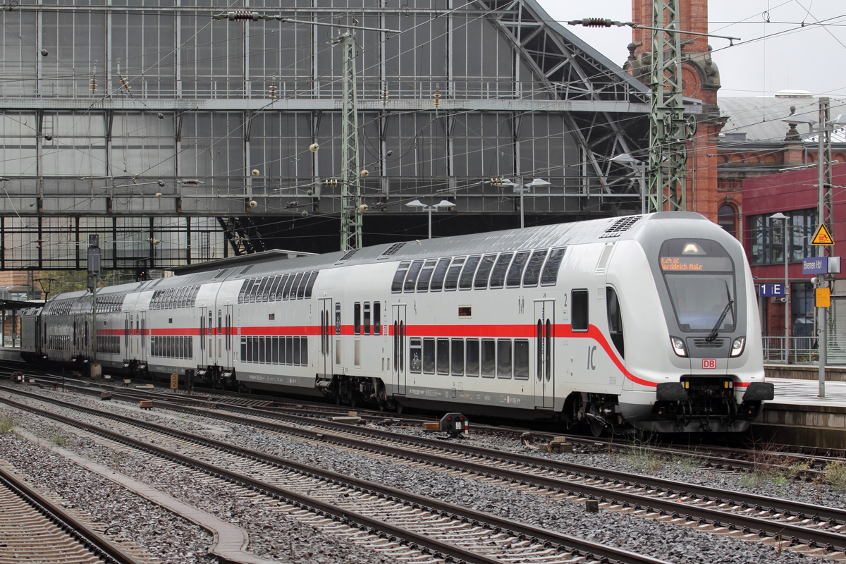 DBpbzfa 668.2 (50 80 86-81 865-7 D-DB) mit Schublok 146 565-7 DB als IC 2032 (Linie 56) von Leipzig Hbf nach Emden Hbf passiert den Hp Halle Messe auf der Bahnstrecke Magdeburg–Leipzig (KBS 340).