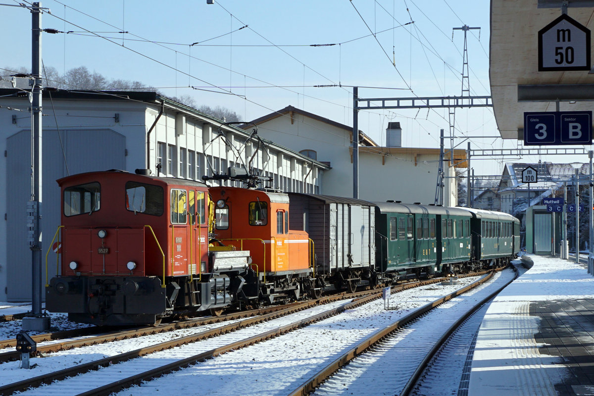 Vorbereitung des Sonderzuges mit Eb 3/5 "Habersack" ehemals SBB, Tm III 9525, Te 2/2, K2, ABDi 722, Bi 527 sowie Bi 538 in Huttwil.