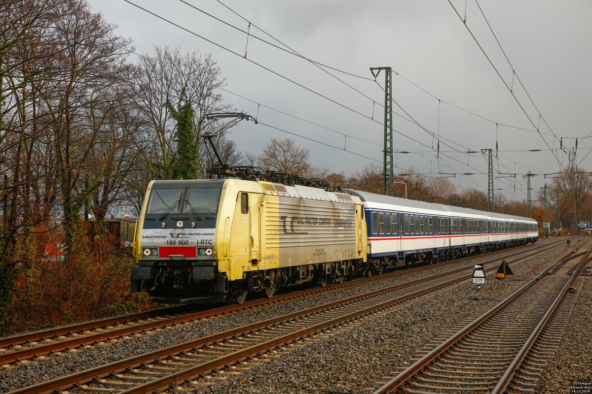 Fundsache an der Donnersberger Brücke nahe dem Münchner Hbf (25.11.19): aus 5 n-Wagen der TRI gebildete Meridian-Ersatzgarnitur mit dem Wittenberger Steuerwagen, Type Bnrdzf 483.1, Nr. 80-35190-3 an der Spitze. Offenbar wird sie für ihren nächsten Einsatz nach Kufstein aufgeheizt. Dass es sich um den Rest des am Nachmittag des 22.11. an der Hackerbrücke entgleisten 7-Wagen-Zuges handelt, kann nur vermutet werden. Hermann-Josef Weirich