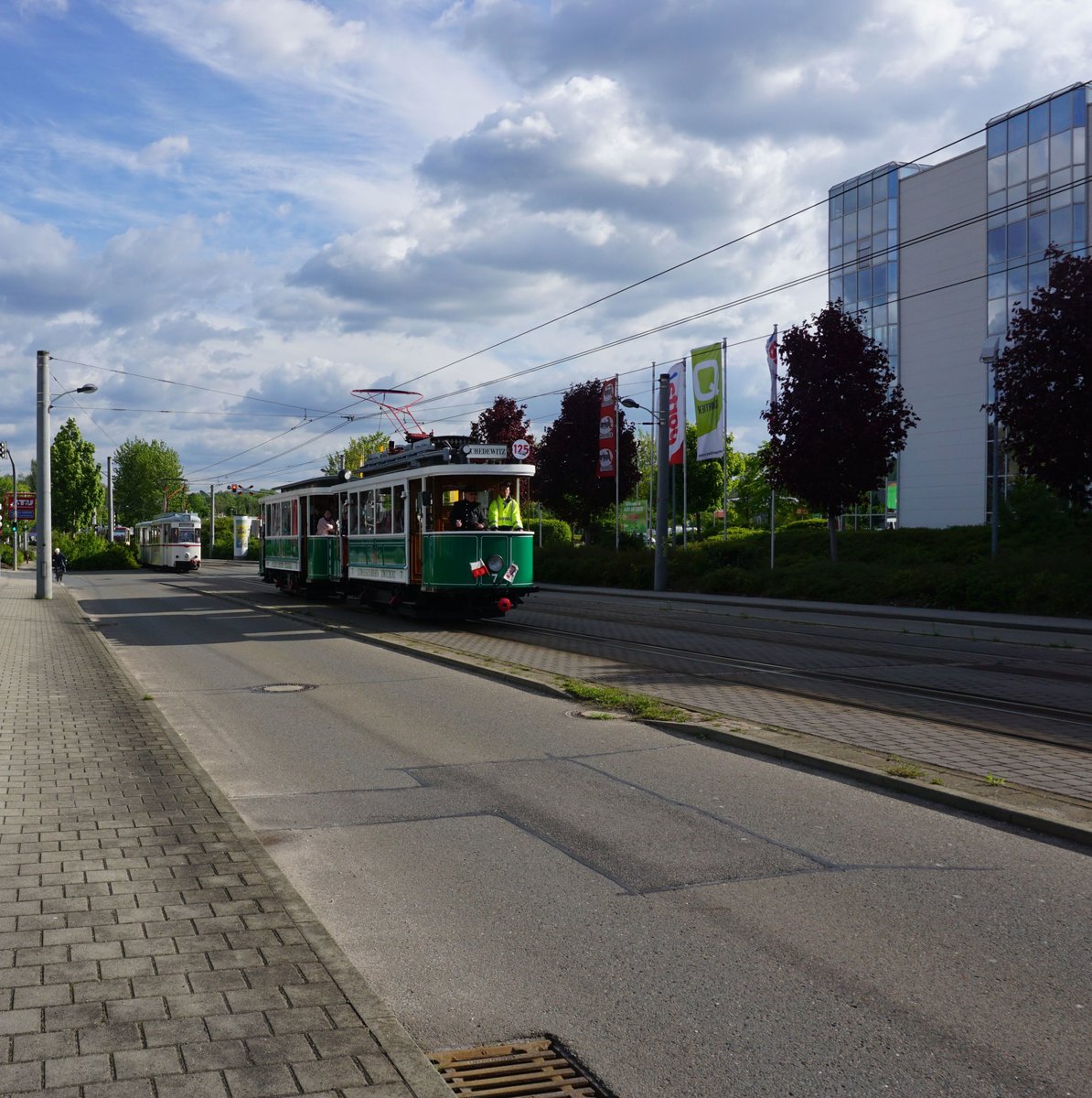 Am 11.und 12. Mai 2019 fanden in Zwickau die Feier zu 125 Jahre Strassenbahn Zwickau statt.Hier der Triebwagen Nummer7 Bj.1912 mit Beiwagen Nummer17. Steffen Eule