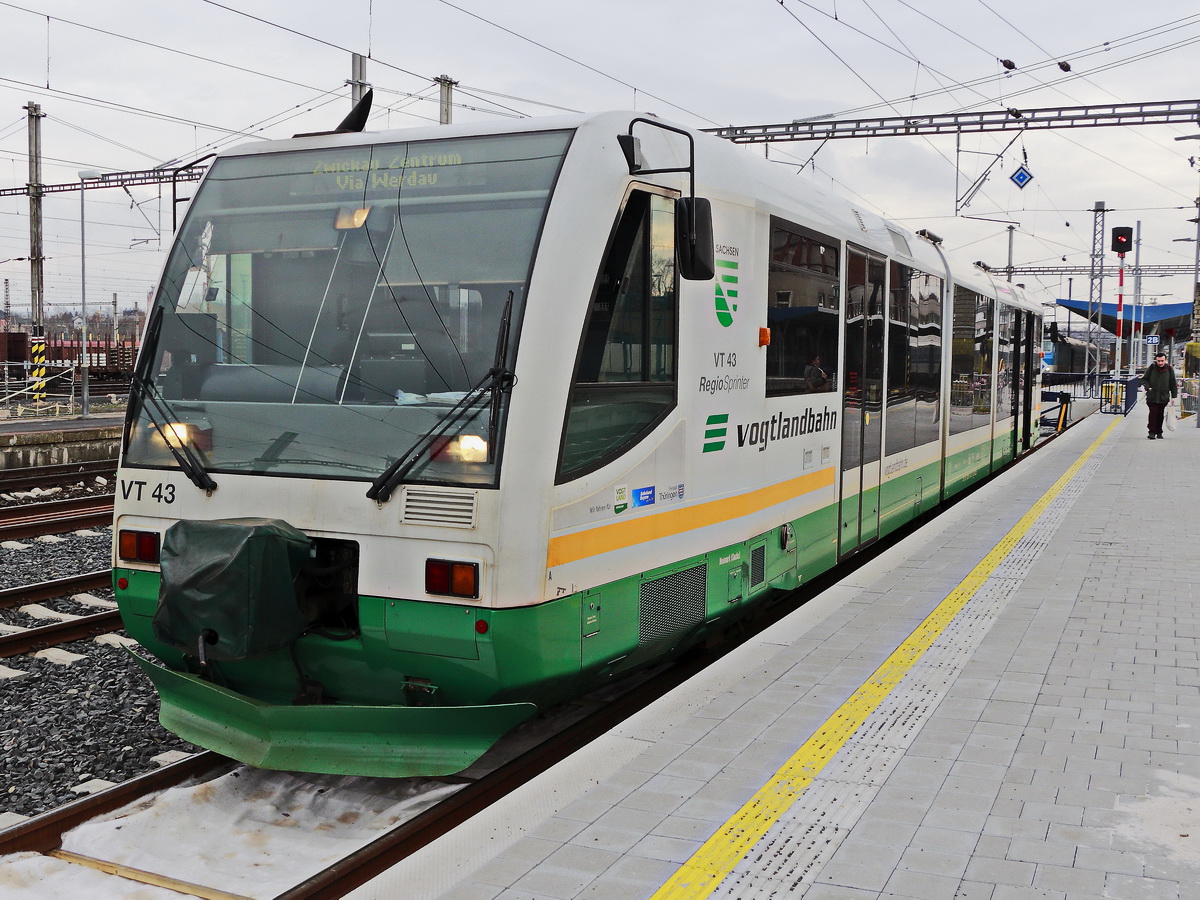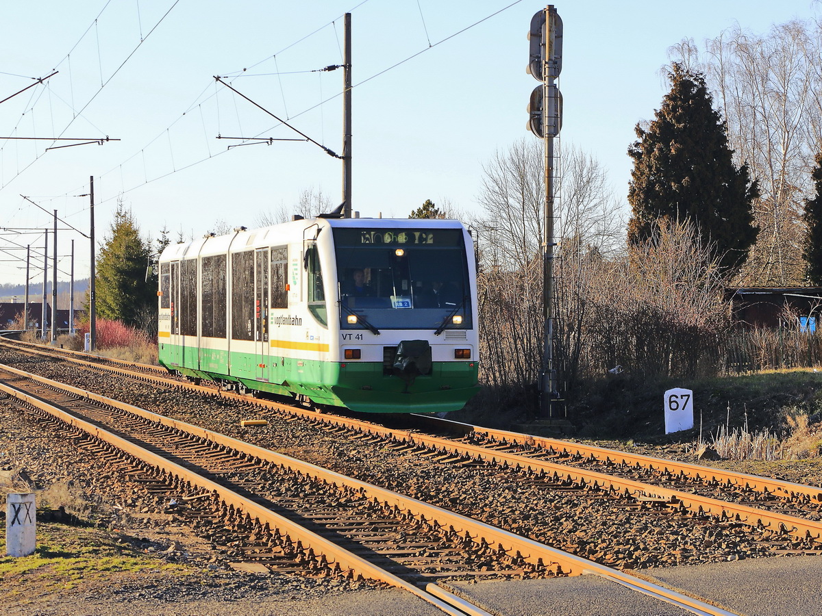Die Vogtlandbahn mit einem RS1 von Zwickau auf dem Weg nach Adorf, schlängelt sich hier durch das verschneite Elstertal nahe Weischlitz am 06.02.2019 Andreas Schreiber