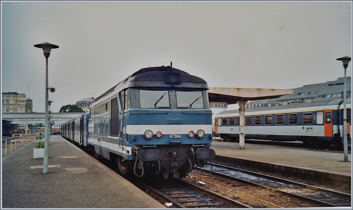 Die SNCF BB 67304 wartet mit einer zu jener Zeit allgegenwärtigen TER-Komposition in Saint Malo auf die Abfahrt nach Rennes.