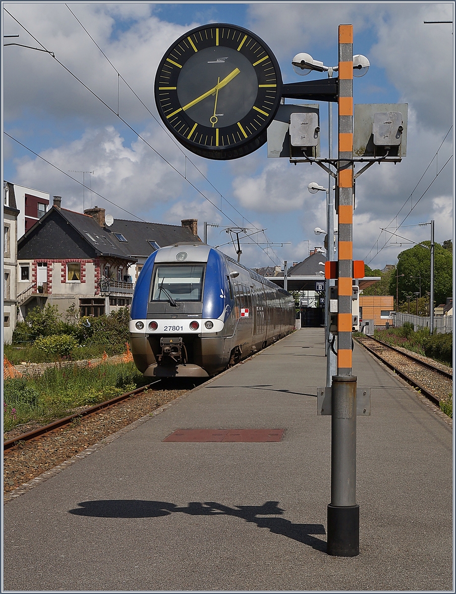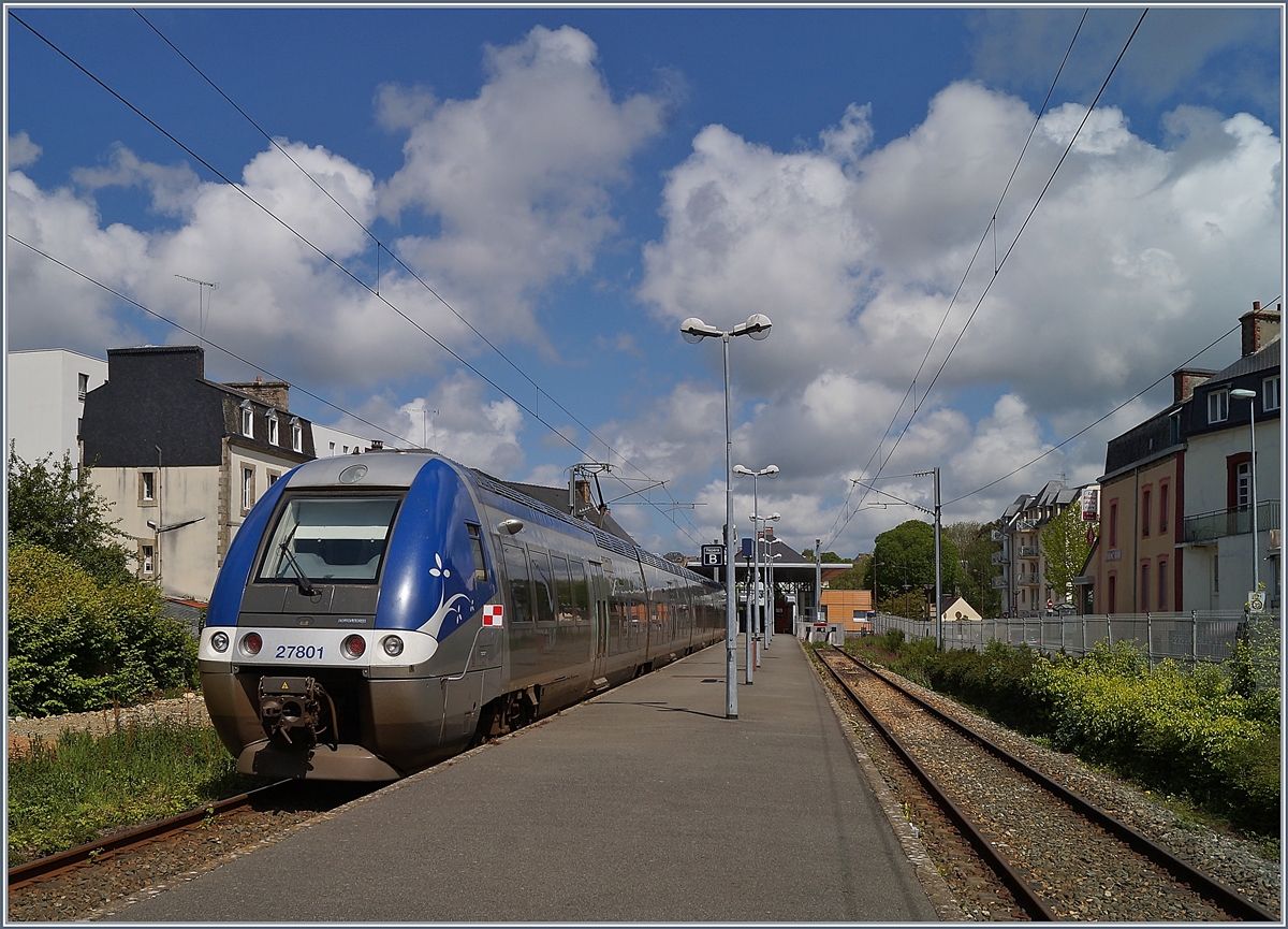 Der SNCF Z 27801 des Regionalverkehrs Breizhgo wartet in Lannion, Endstation der Stichstrecke von Plouaret Trégor, auf einen neuen Einsatz.