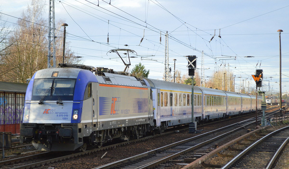 EC 46 aus Warszawa Wschodnia mit PKP Intercity spółka z o.o., Warszawa [PL] "5 370 007" [NVR-Nummer: 91 51 5370 007-4 PL-PKPIC] am 11.12.19 Berlin Hirschgarten. Lothar Stöckmann
