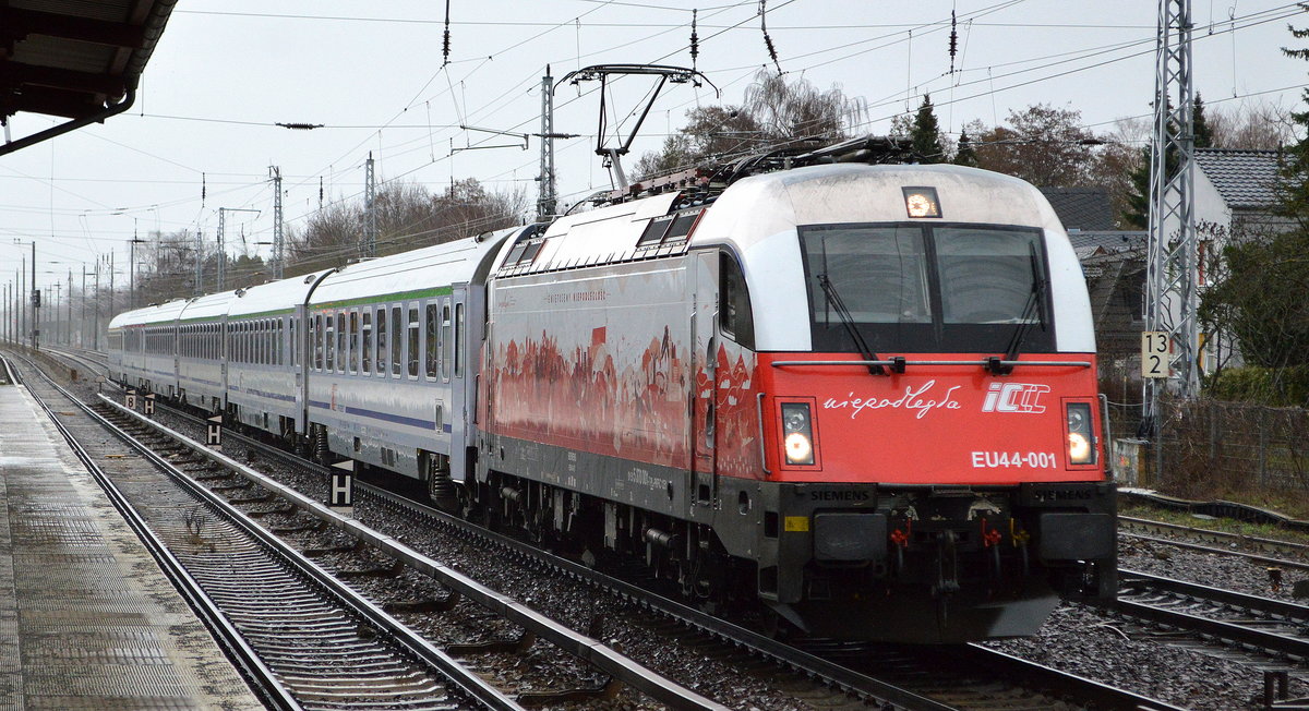 PKP Intercity spółka z o.o mit "EU44-001/5 370 001" [NVR-Number: 91 51 5370 001-3 PL-PKPIC] und dem EC 54 aus Gdynia Glowna (Polen) Richtung Berlin City am 08.03.19 Berlin-Hirschgarten. Lothar Stöckmann