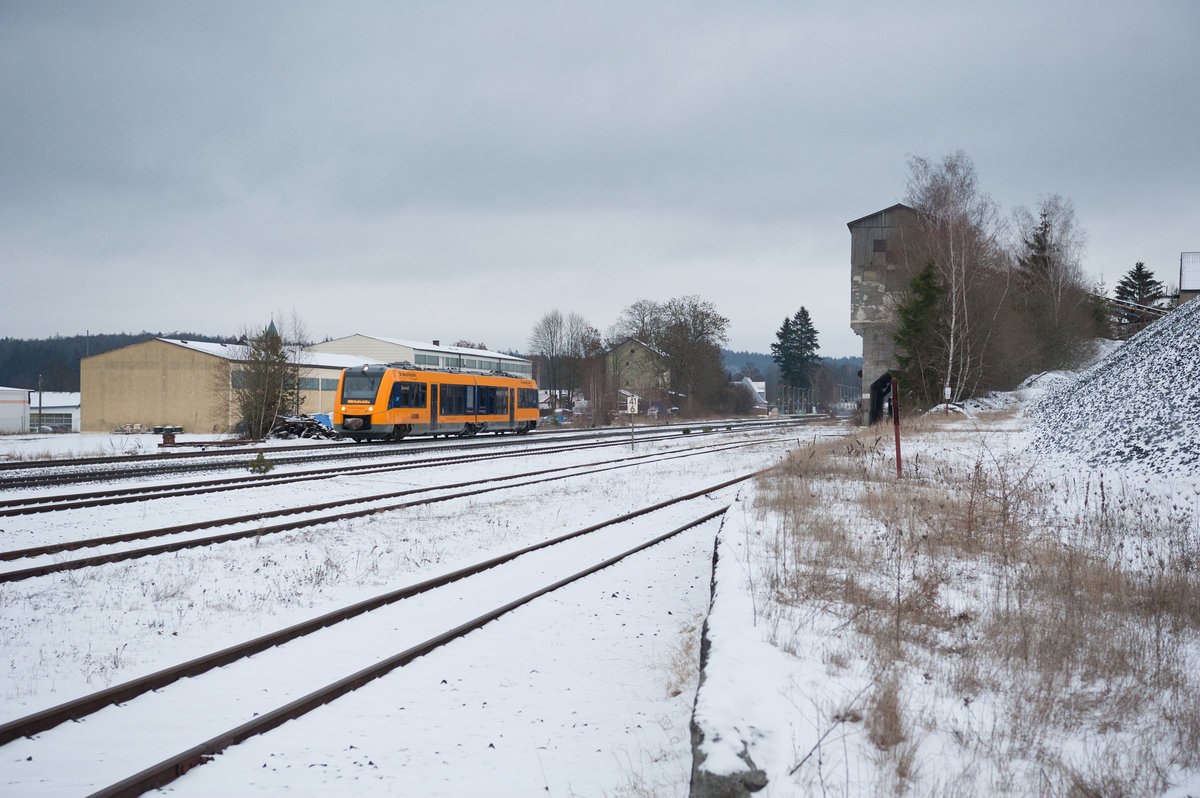 Am 20.03.2019 verlässt 648 205 der Oberpfalzbahn als OPB Marktredwitz-Regensburg den Bahnhof Windischeschenbach.