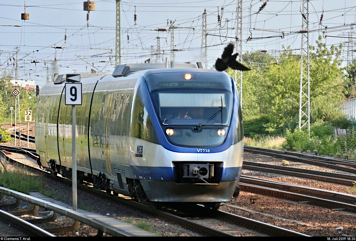 643 410-3 (VT 738 | Bombardier Talent) der NEB Betriebsgesellschaft mbH (Niederbarnimer Eisenbahn AG | NEB) als RB 61169 (RB25) von Berlin Ostkreuz nach Werneuchen durchfährt den Bahnhof Berlin Springpfuhl auf dem Berliner Außenring (BAR | 6012).