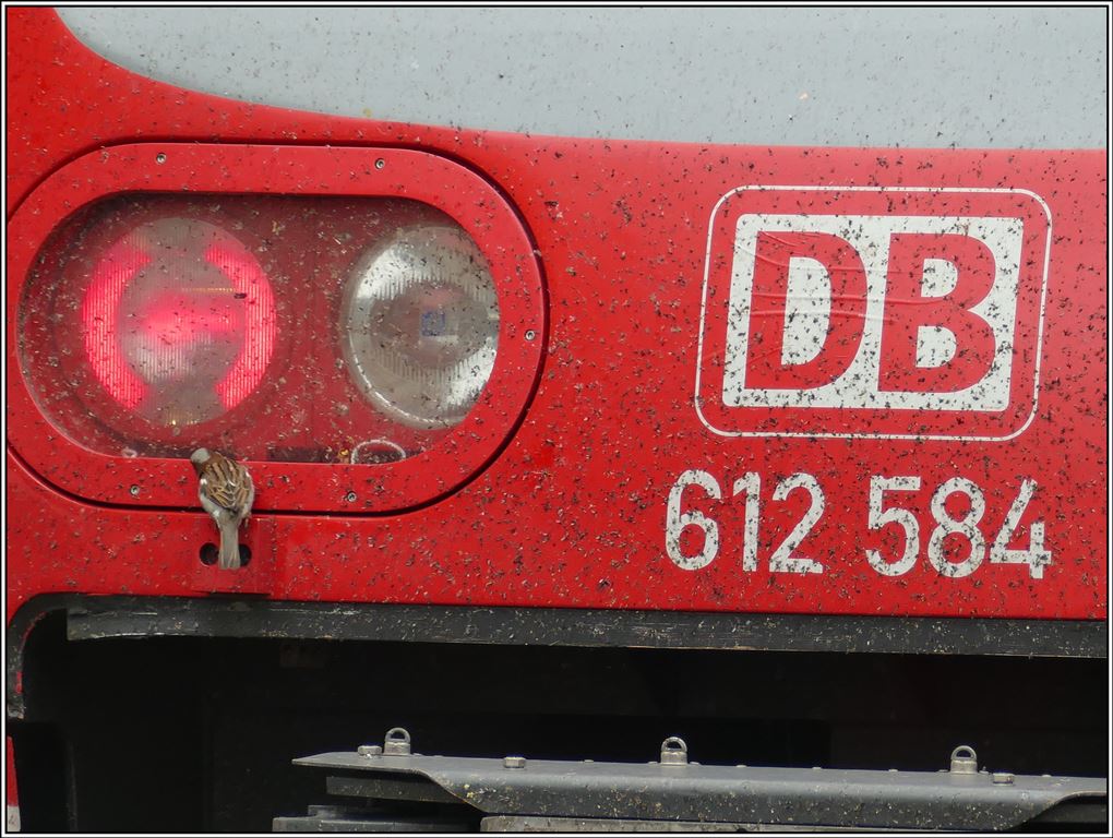 Dieser (mehr oder weniger) blinde Passagier turnte auf einem Bombardier Married-Pair-Wagen von DB Regio Schleswig-Holstein (DB Regio Nord) herum und möchte anscheinend den RE 11079 (RE6) nach Husum nutzen.