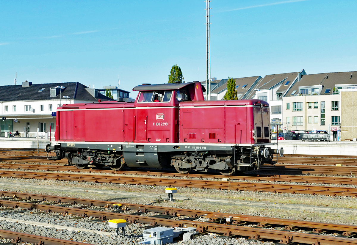In Aulendorf wartet 212 133-3 am 16.09.2019 mit den in Biberach (Riß) entleerten Schüttgutwagen der Gattung Tds auf Streckenfreigabe in Richtung Herbertingen Jürgen Vos