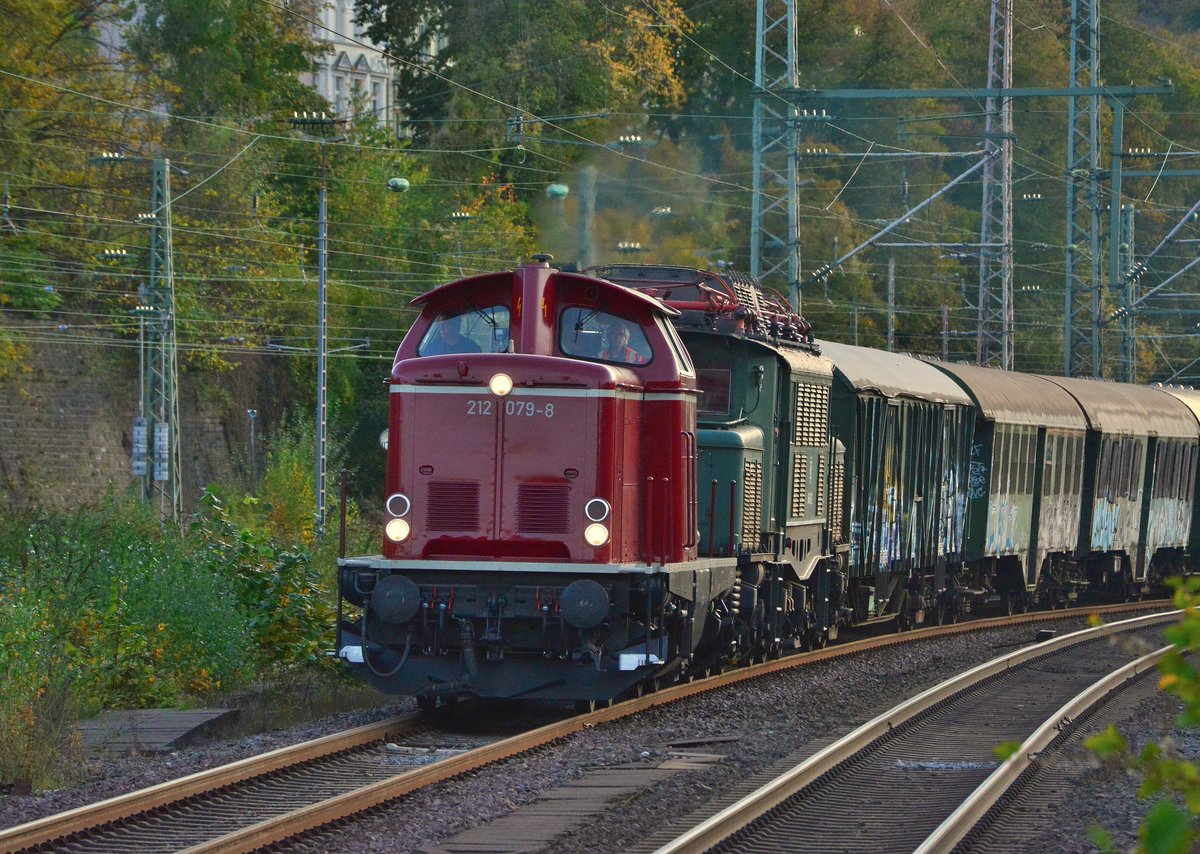212 079-8 zieht 194 158-2 und einige Wagen am Abend durch Wuppertal Steinbeck nach Hamm wo 194 158 ihre neue Heimat findet wird.