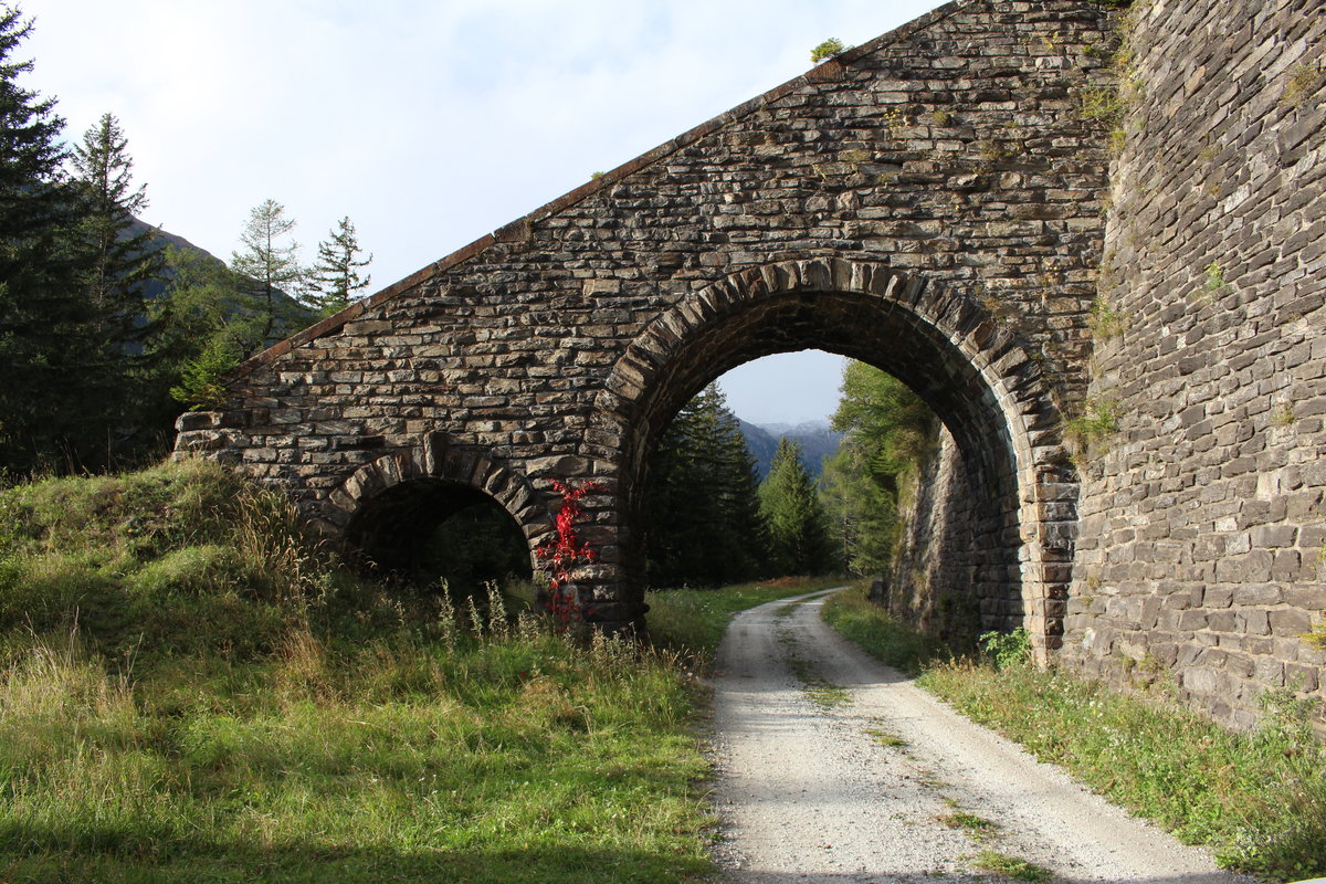 Hier zu sehen am 4.10.2019 ein altes Aquädukt für Schmelzwasser über der ehemaligen Strecke zwischen Mallnitz-Obervellach und Kaponig. Max Kiegerl
