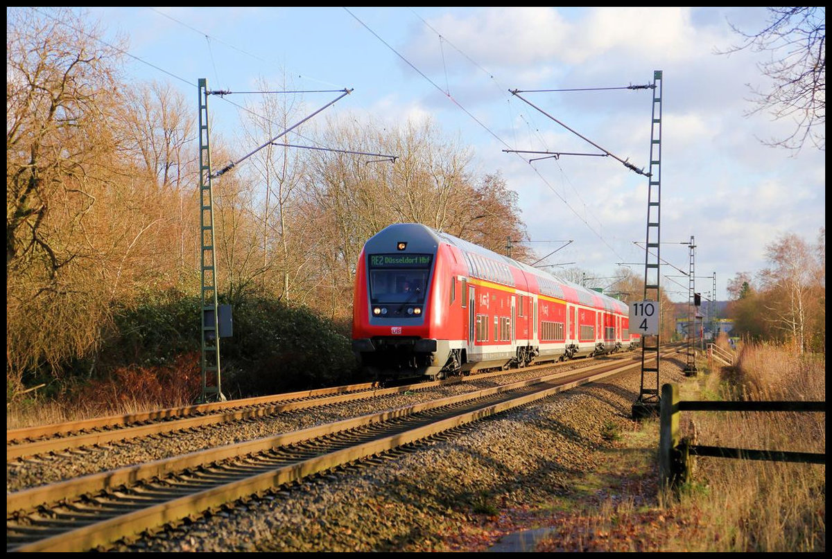 Am 15.12.2019 gab es eine neue Zugverbindung mit dem RE 2 von Osnabrück nach Düsseldorf. Um 10.55 Uhr erreichte der RE 2 mit Steuerwagen voraus pünktlich den Ortsrand von Hasbergen. Gerd Hahn
