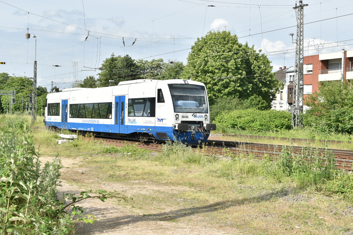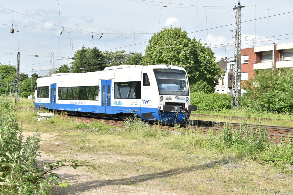 Eigentlich fährt die RB 34 nach Dalheim vom Gleis 4 aus, aber aus einem mir nicht bekannten Grund fährt der VT 745 von Gleis 3 aus. Rheydt Hbf 12.6.2019 Andreas Strobel