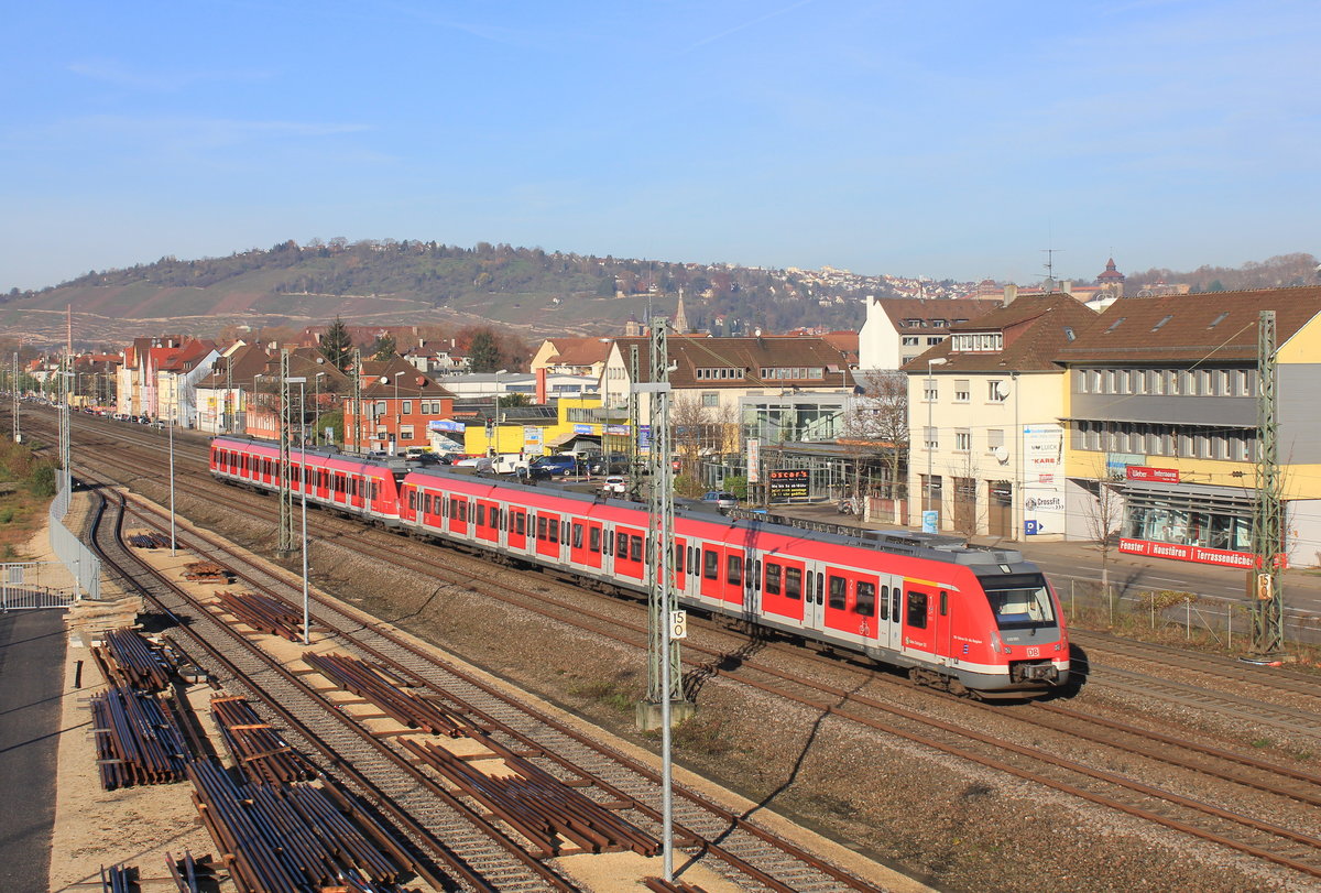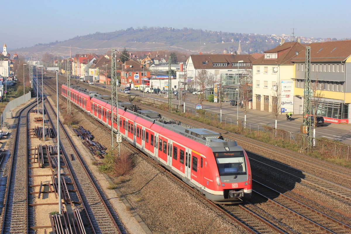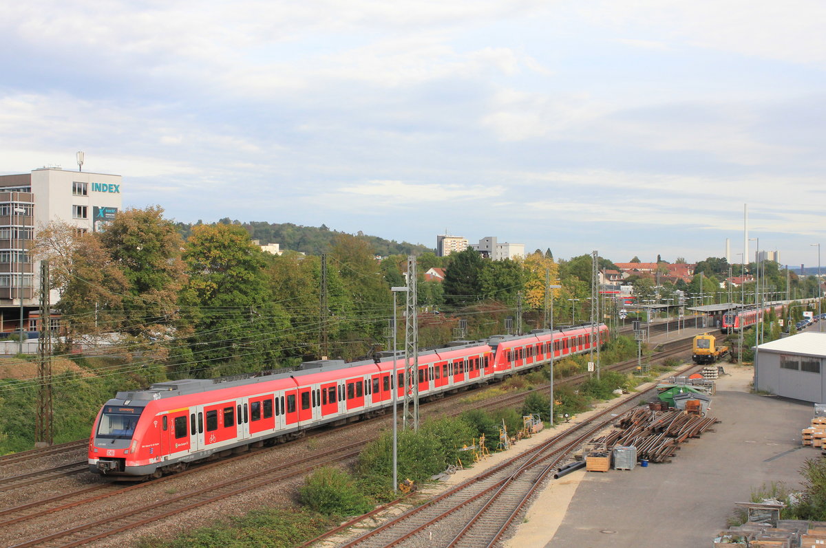 430 585-0 und 430 ??? der S-Bahn Stuttgart als S5 von Bietigheim-Bissingen nach Stuttgart Schwabstraße verlassen den Bahnhof Tamm(Württ) auf der Bahnstrecke Stuttgart–Würzburg (Frankenbahn | 4800).