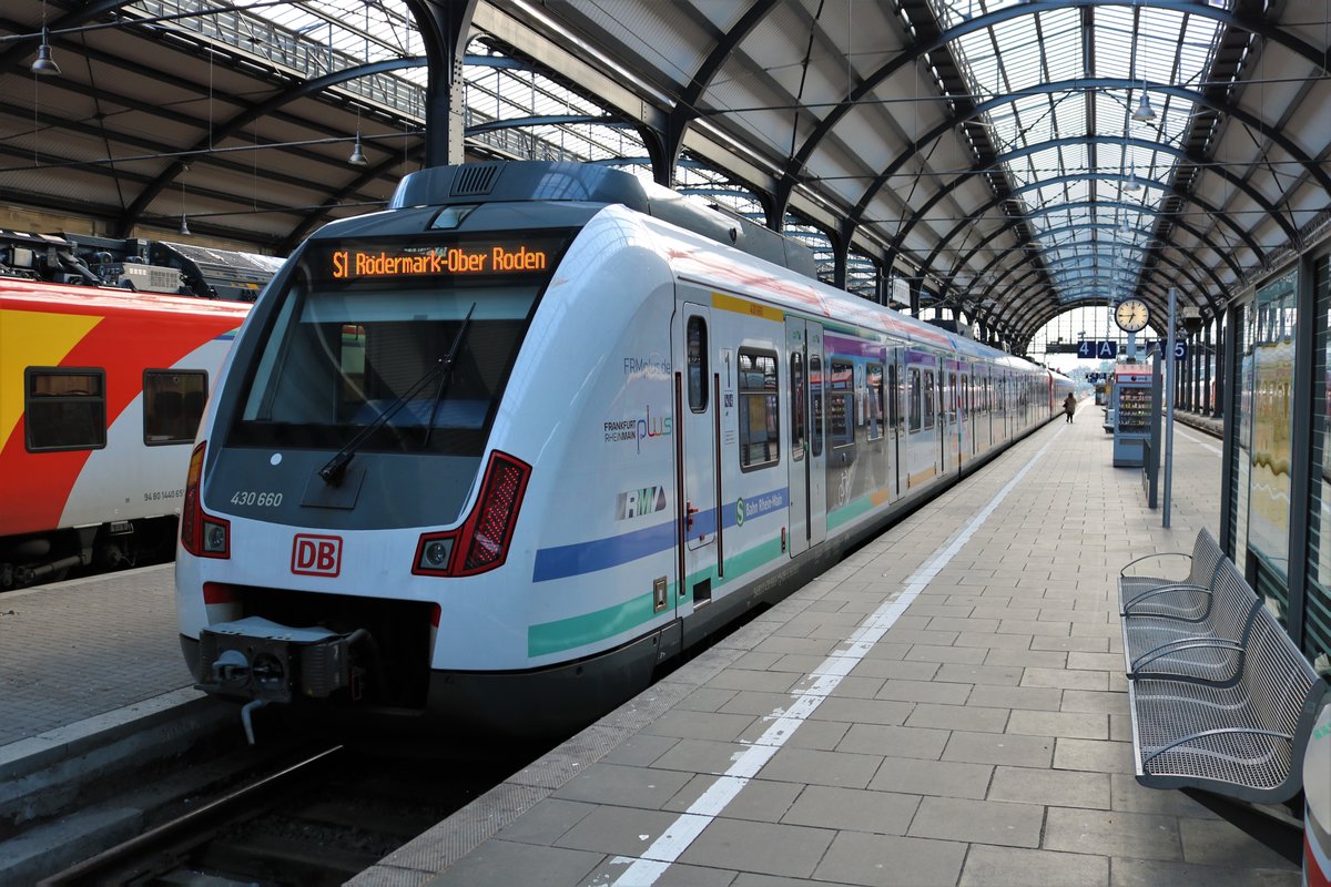 DB Regio S-Bahn Rhein Main 430 160 mit Vollwerbung für die neue Station Gateway Gardens am 14.12.19 in Frankfurt am Main Flughafen Fernbahnhof Daniel Oster