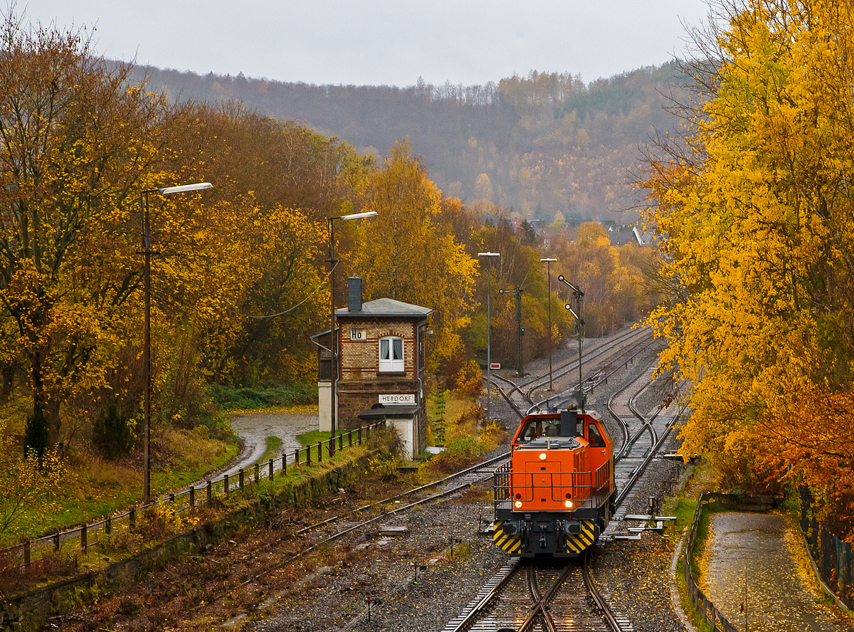 Die KSW 44 (92 80 1271 004-4 D-KSW) die MaK G 1000 BB der KSW (Kreisbahn Siegen-Wittgenstein) fährt als Lz am 16.11.2020 von Herdorf ind Richtung Burbach los. Armin Schwarz