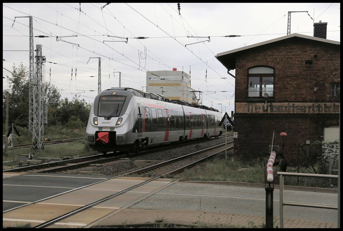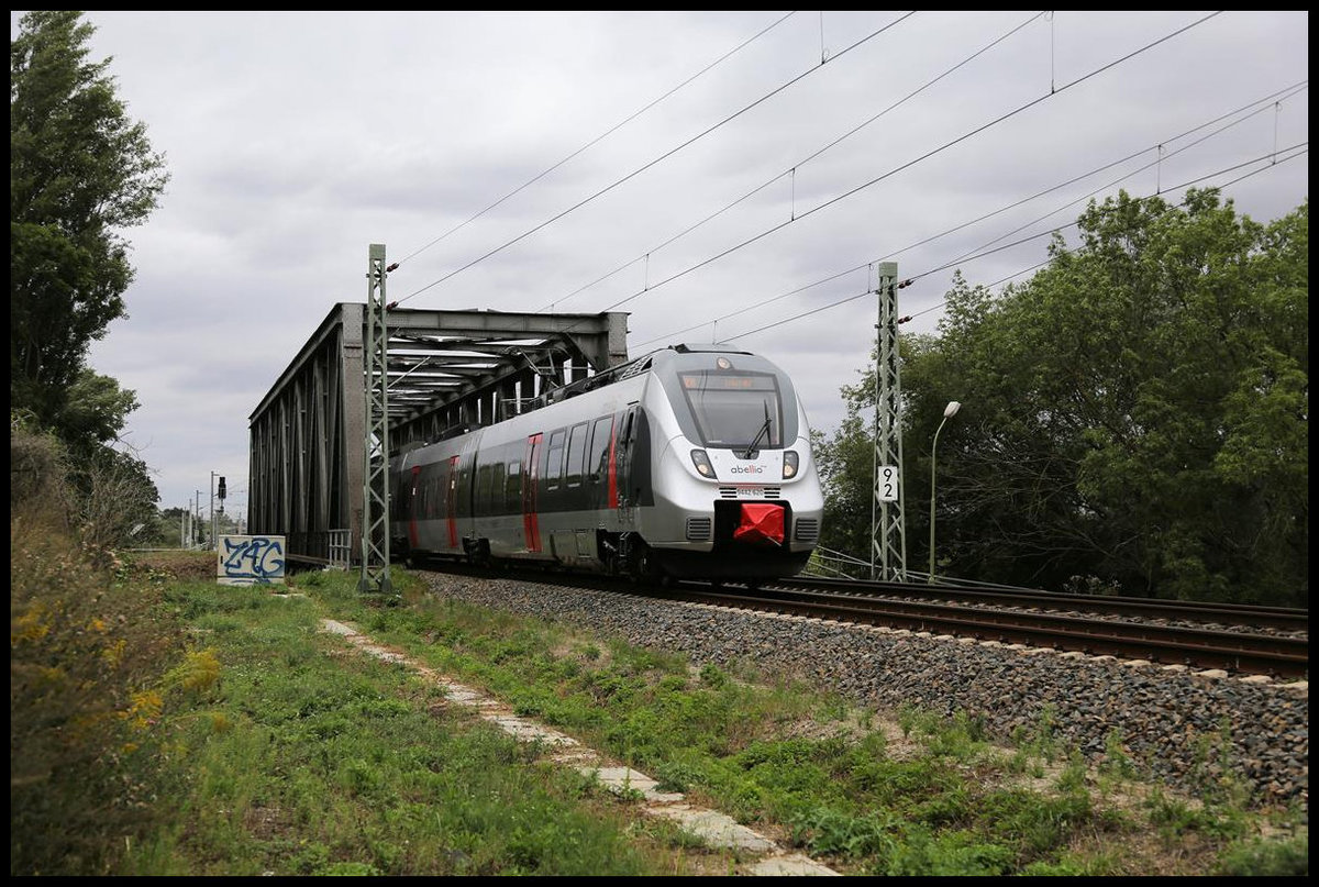 Abellio 9442314 hat hier am 26.8.2020 um 13.29 Uhr gerade den Haltepunkt Schkopau verlassen und fährt nun in Richtung Saalebrücke nach Halle weiter. Gerd Hahn
