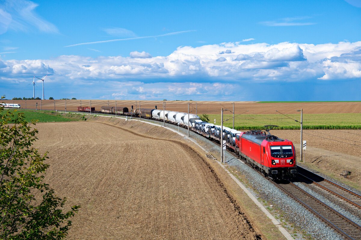187 172 rauscht mit einem Güterzug durch Schönebeck Frohse in Richtung Köthen. Interessant ist hier das man die alten Pilzlampen bei der Bahnsteigmodernisierung nicht durch neue moderne Laternen getauscht hat sonder weiter nutzt.