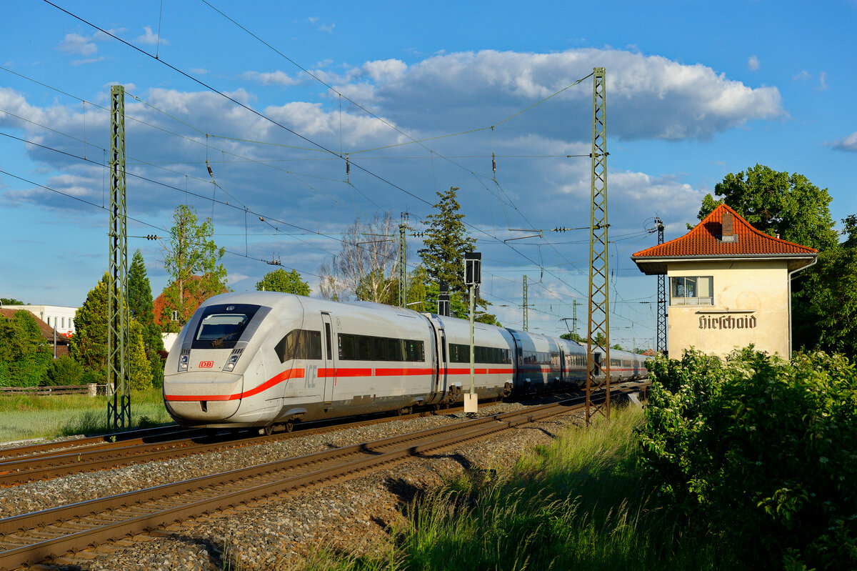 Am Abend des 08.07.2020 fuhr 412 040 (9040/0812 040-5) als ICE 77 (Kiel Hbf - Zürich HB) südlich von Buggingen über die KBS 702 durchs Rheintal in Richtung Schweiz. Tobias Schmidt