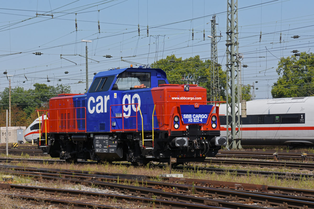 Rangierlok H3 1002 022-4 durchfährt den badischen Bahnhof. Die Aufnahme stammt vom 11.09.2020.