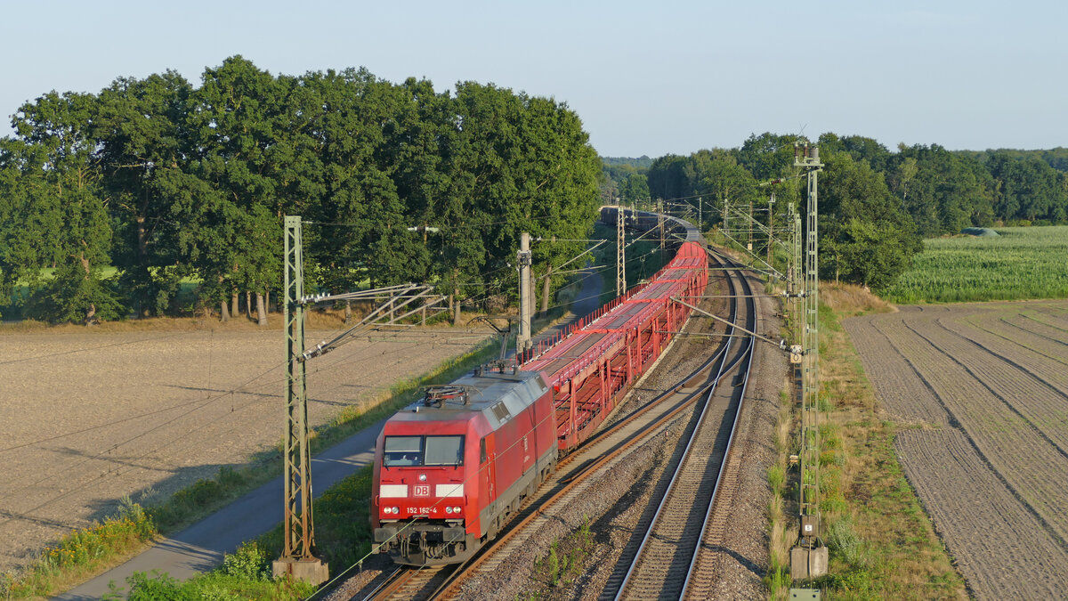 DB Cargo AG [D] mit ihrer "152 073-3" [NVR-Nummer: 91 80 6152 073-3 D-DB] und einem Ganzzug Schüttgutwagen mit Schwenkdach am 22.05.20 Vorbeifahrt Bahnhof Hamburg Harburg. Lothar Stöckmann