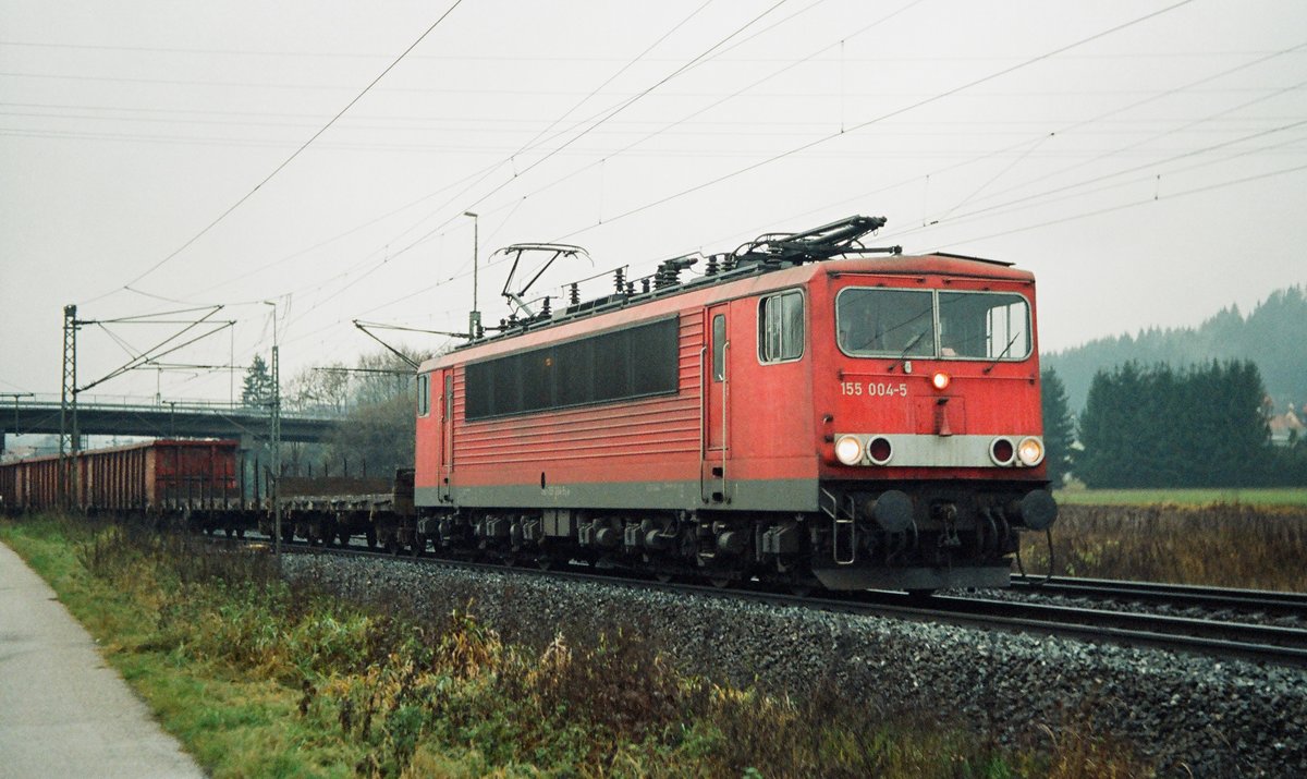 17. November 2009, Pressig-Rothenkirchen: Ein Güterzug fährt in Richtung Saalfeld aus. Lok 155 004 führt. Die als Schiebelok eingesetzte 151 087 ist im Bild nicht zu sehen.. Jürgen Krause