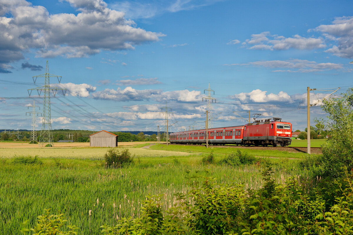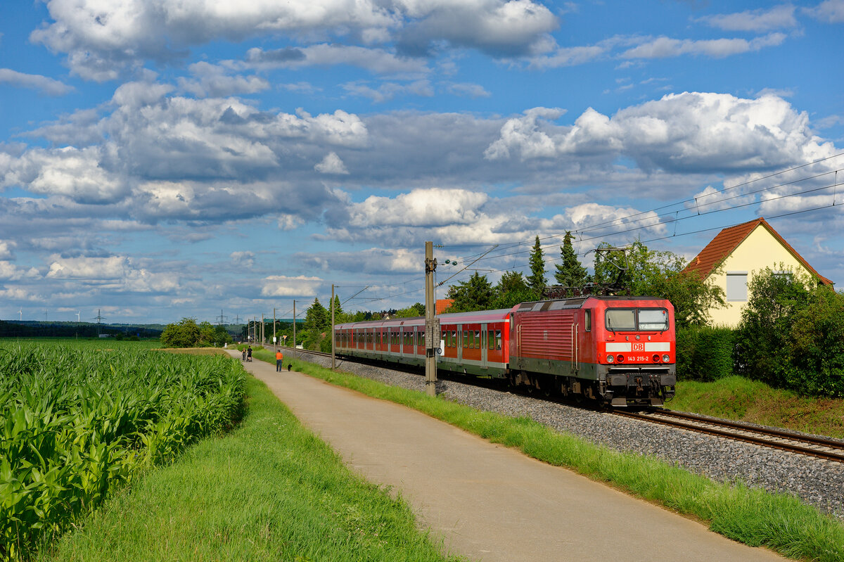 143 336 als S2 (Roth - Altdorf) bei Ludersheim, 03.07.2020