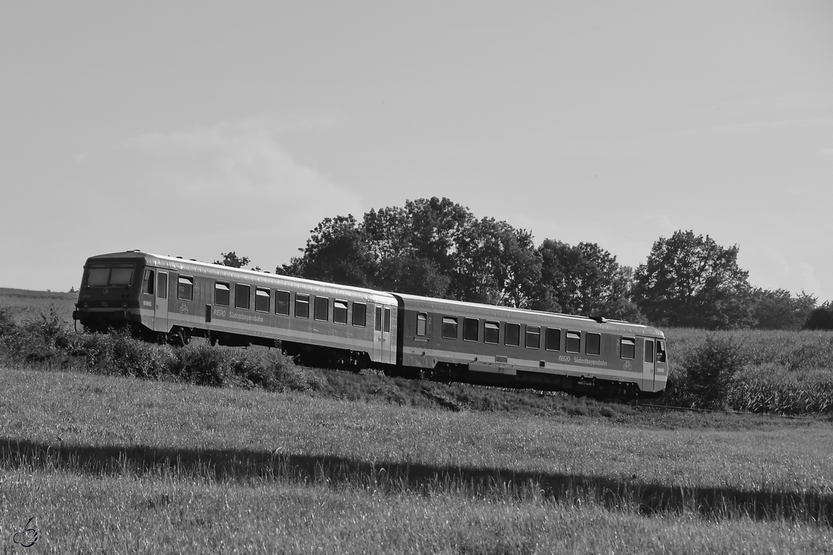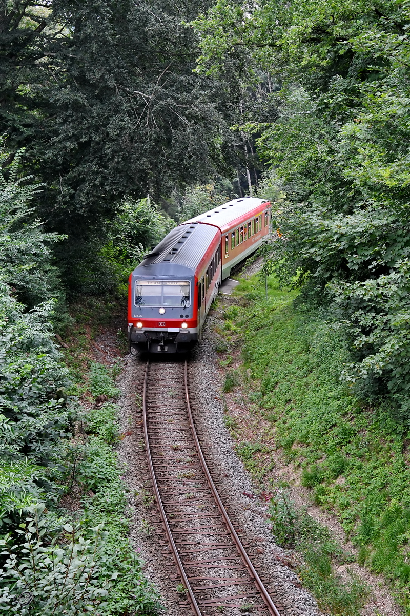 Am 13.04.2020 fuhren zwei Dieseltriebwagen der Baureihe 628 von der Südostbayernbahn über die Main-Lahn-Bahn nach Limburg(Lahn). Hier hat der Zug kurz hinter Niederbrechen den Bahnübergang unterhalb der Berger Kirche passiert. Anton Eisenbach