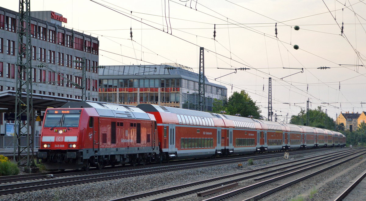 Regionalverkehr in Bayern "Südostbayernbahn" mit dem Tandem DB Regio AG [D] "245 008" [NVR-Nummer: 92 80 1245 008-8 D-DB] vorneweg und hinten dran "245 014" [NVR-Nummer: 92 80 1245 014-6 D-DB] Richtung München Hbf. am 11.08.20 Bf. München Heimeranplatz. Lothar Stöckmann