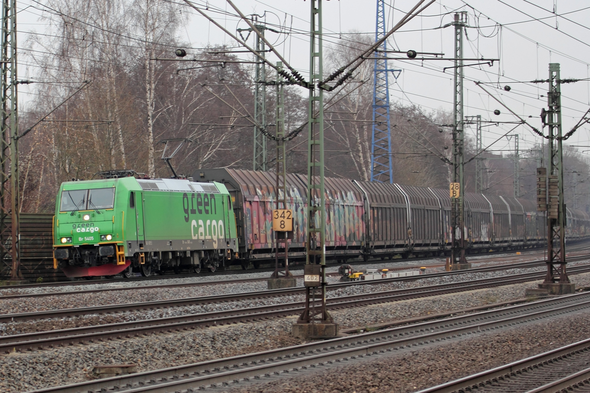 Bald ist es zwei Jahre her, daß die 185 207 von DB Cargo mit einem Zug aus offenen Güterwagen des Typs Eaos/Eanos den Bahnhof Traunstein Richtung München durchfuhr. Samstag, 22. Februar 2020 Gerold Hörnig
