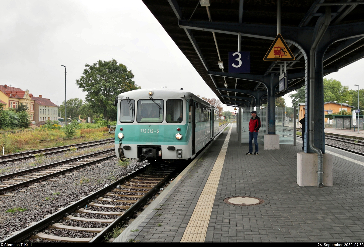 Fahrzeugsammlung Pester 972 771-0 + 772 312-5 als DPE 80195 nach Staßfurt Leopoldshall (TBw), am 28.09.2020 bei der Bereitstellung im Bf Staßfurt. Frank Thomas