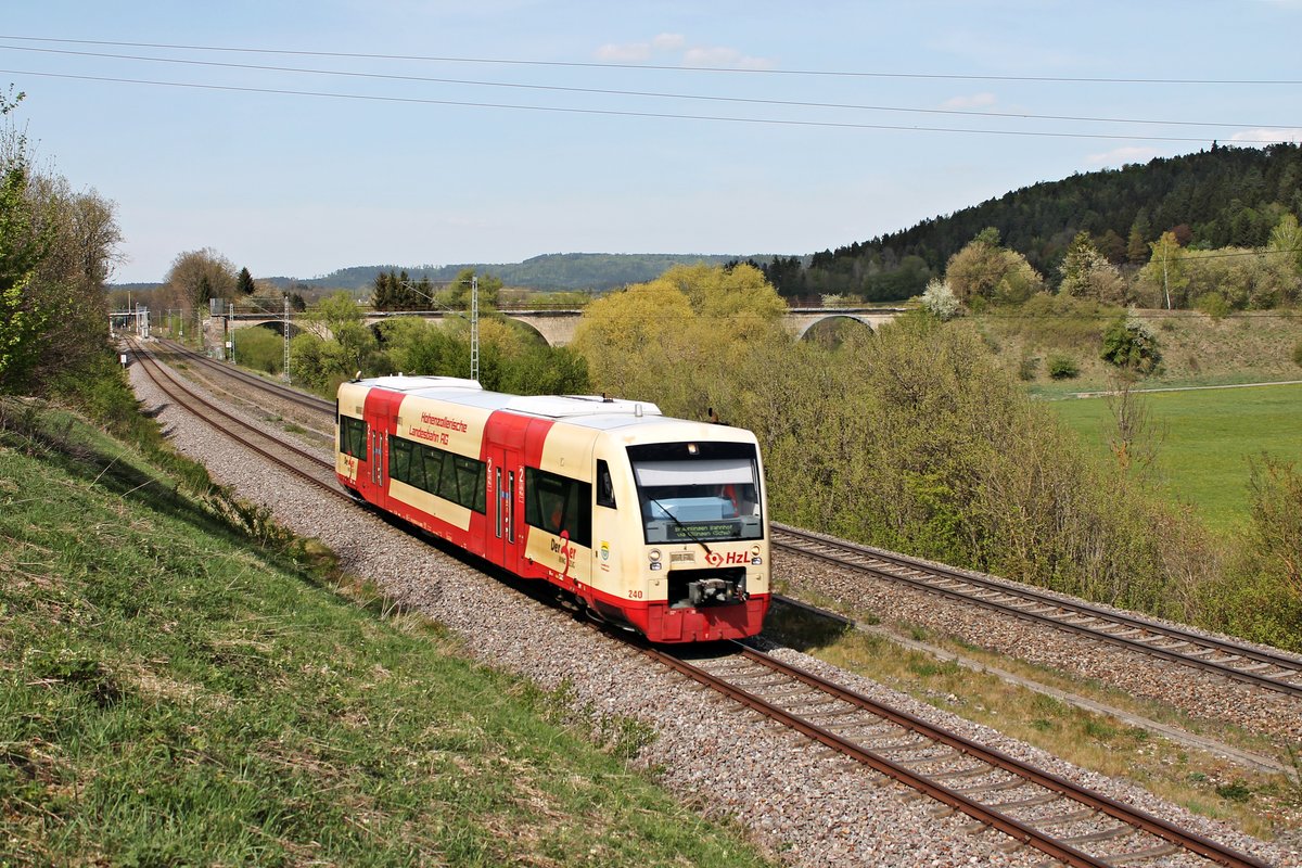 Am Nachmittag des 24.04.2020 fuhr SWEG/HzL 240 (650 636-3) als Ringzug (Rottweil - Bräunlingen Bahnhof) aus dem Haltepunkt von Rottweil Saline in Richtung Villingen. Tobias Schmidt