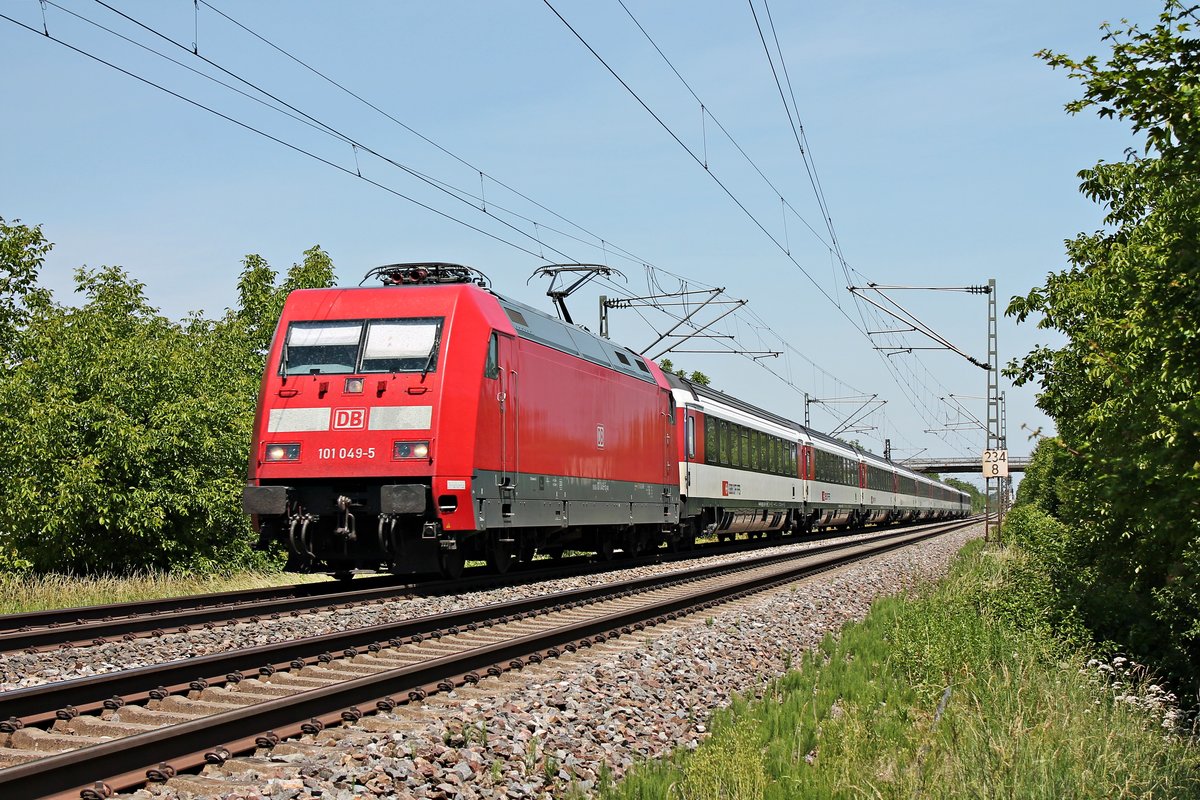 Am späten Nachmittag des 03.06.2020 fuhr 101 049-5 mit dem EC 8 (Zürich HB - Hamburg Altona) nördlich von Waghäusel über die Rheintalbahn in Richtung Mannheim. Tobias Schmidt