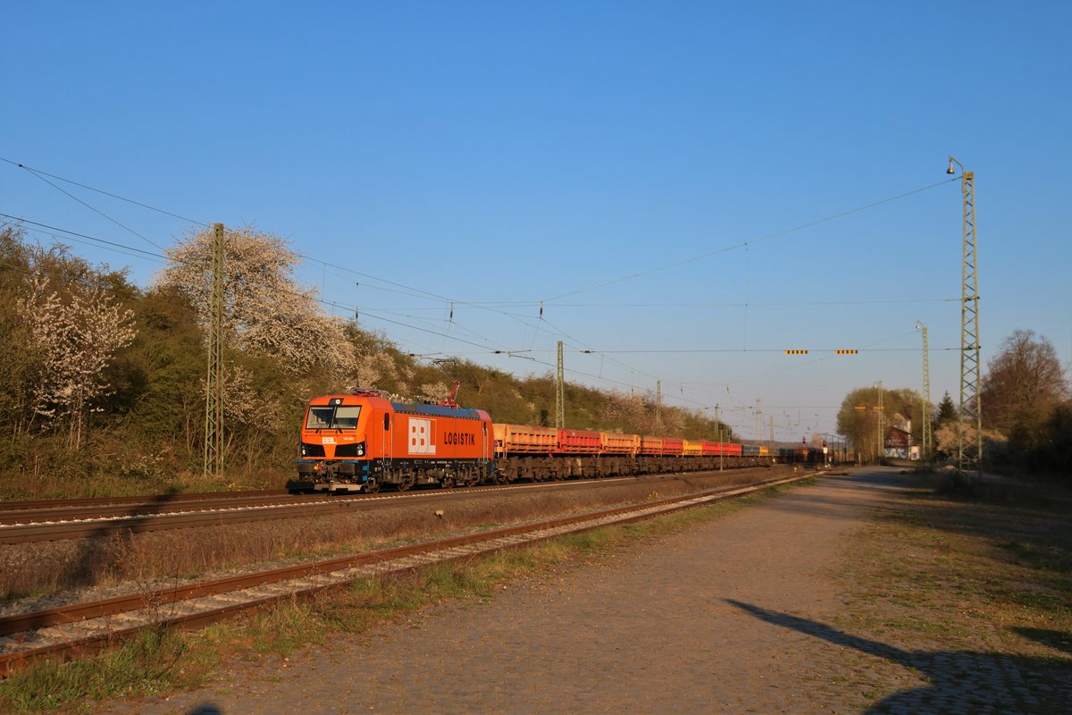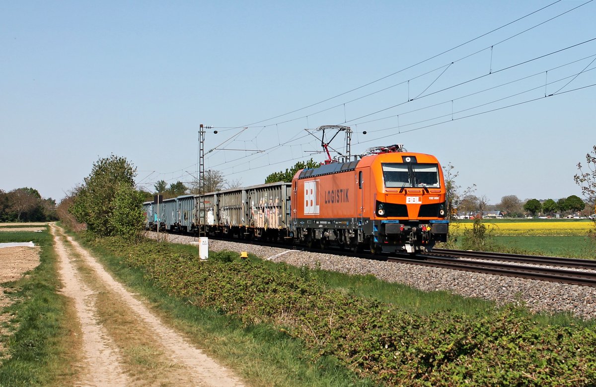 Mit einem leeren E-Wagenzug nach Basel Bad Rbf fuhr am Nachmittag des 22.04.2020 die 192 008 von BBL Logistik südlich von Buggingen über die Rheintalbahn durchs Markgräflerland in Richtung Schweiz. Tobias Schmidt