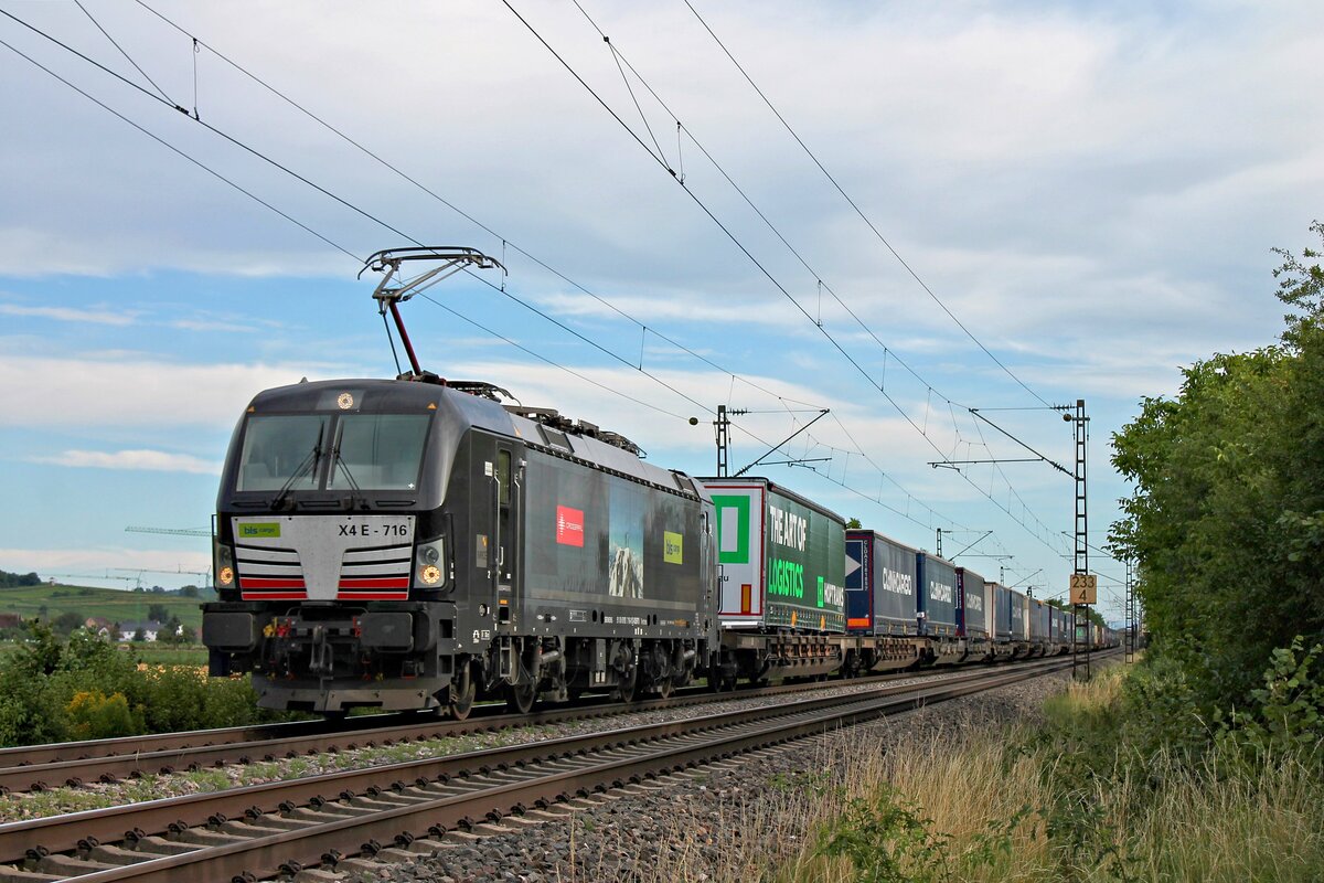 Am Abend des 08.07.2020 fuhr MRCE/BLSC X4 E-716 (193 716-8) "CROSSRAIL - bls cargo" mit einem KLV nach Rotterdam Waalhaven nördlich von Hügelheim über die KBS 702 durchs Rheintal in Richtung Buggingen. Tobias Schmidt