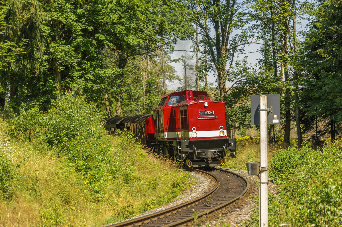 Heute war Diesel angesagt bei der HSB, 199 872 in Nordhausen Nord 14.08.2020 Leider ein Wolkenschaden und im Gegenlicht, so vorteilhaft bearbeitet wie möglich Stephan John