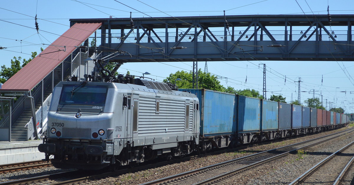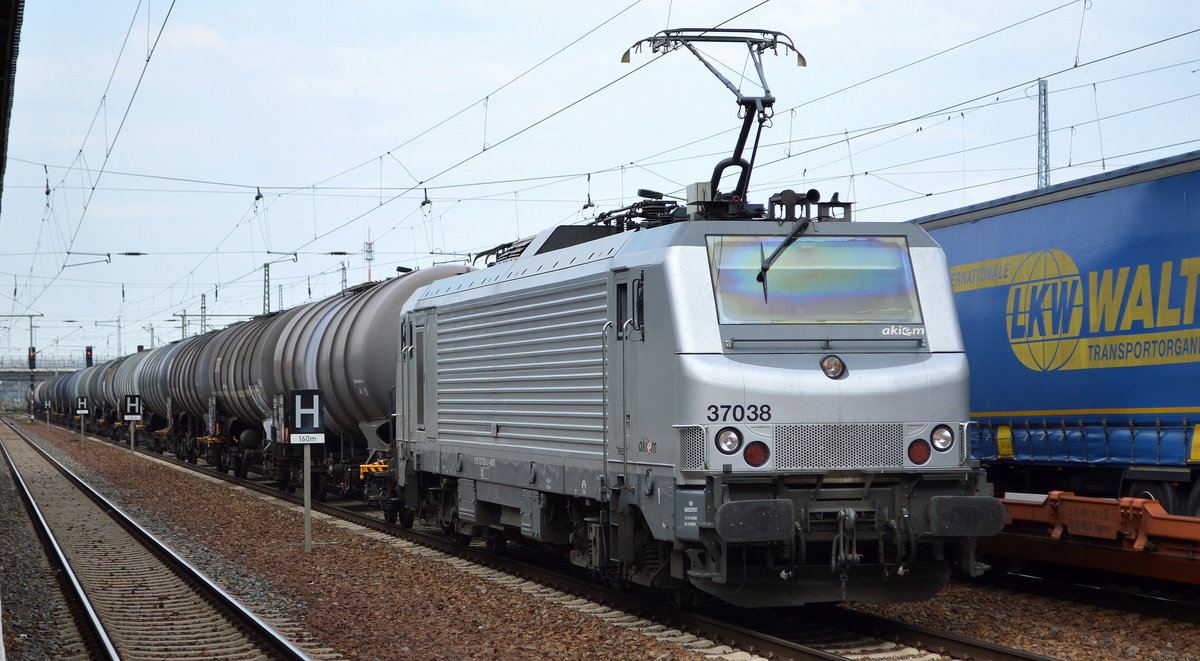 AKIEM SAS, Clichy [F] "37050" [NVR-Nummer: 91 87 0037 050-8 F-AKIEM], ich bin mir nicht sicher ob immer noch CFL Cargo die Maschine nutzt mit einem polnischen nicht voll ausgelastetem Containerzug bei der Durchfahrt Bf. Frankfurt/Oder am 28.03.20 Später kam die Lok leer zurück und wurde am Rand des Bf. abgestellt. Lothar Stöckmann