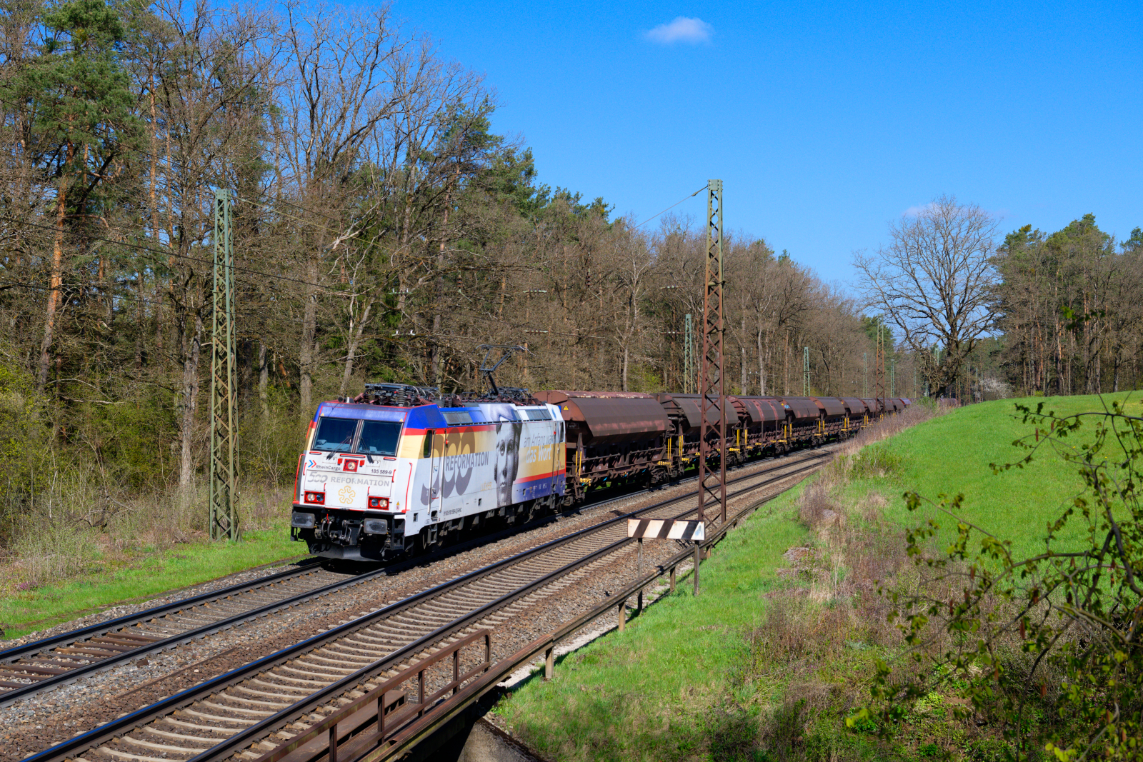 Mitzieher auf 185 350 RHC "Grenzenlos für Sie im Einsatz" und 187 072 RHC mit einem Kesselzug bei Emskirchen Richtung Fürth, 08.09.2021 Korbinian Eckert