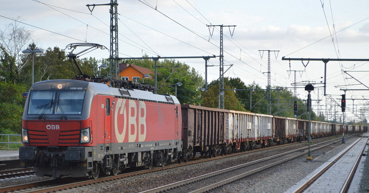 ÖBB-Produktion GmbH, Wien [A] mit "1293 032" [NVR-Nummer: 91 81 1293 032-9 A-ÖBB] mit dem Schrottzug aus Wismar Richtung Brandenburg am 06.10.21 Durchfahrt Bf. Golm (Potsdam). Lothar Stöckmann