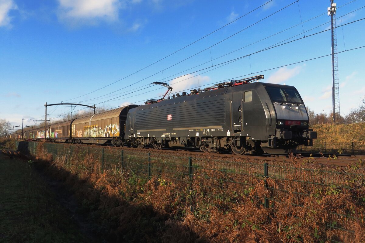 Am 28 September 2021 zieht 189 098 ein Ganzzug mit Schiebewandwagen durch Tilburg Reeshof und wird vom offenbarer Platz fotografiert. Leonardus Schrijvers