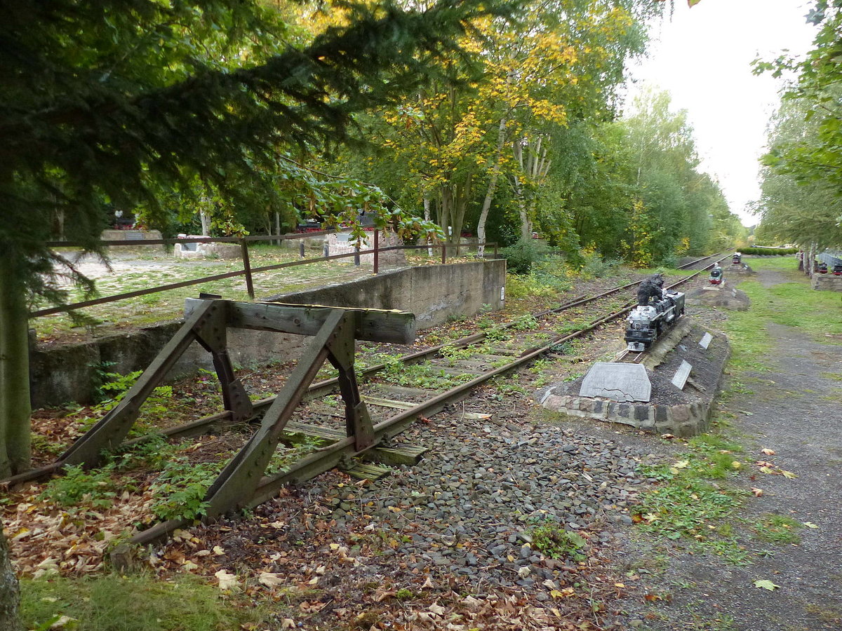 Ein Prellbock im ehemaligen Bahnhof Gerbstedt am 28.09.2019. Jetzt kann man dort verschiedene und einzigartige 1:10 Modelle aus Stein bewundern. Frank Thomas