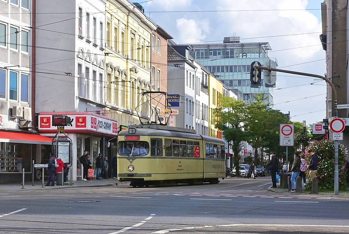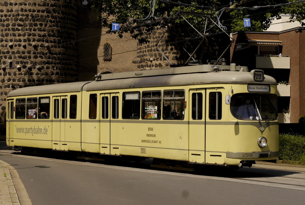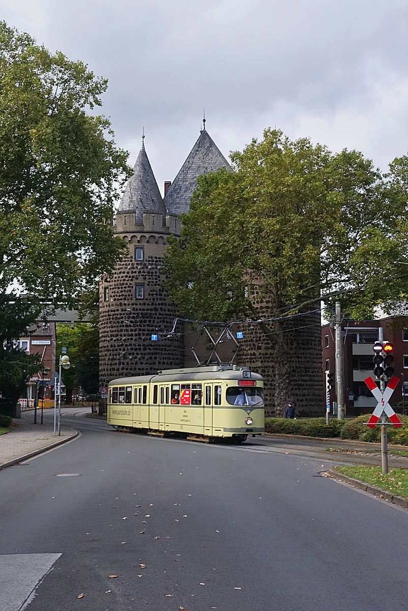 Düwag-Sechsachser 2501 der Rheinbahn auf Stadtrundfahrt vor dem Neusser Obertor am 17.7.21. Der sonst übliche Wagen 954 genügte wohl den Abstandsregeln bei wachsender Inzidenzzahl nicht. Hermann-Josef Weirich